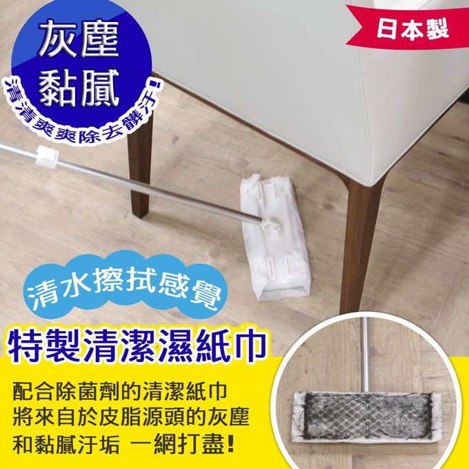 2輕輕黏附於拖把,滑過欲清掃處。3髒污時可換面使用。