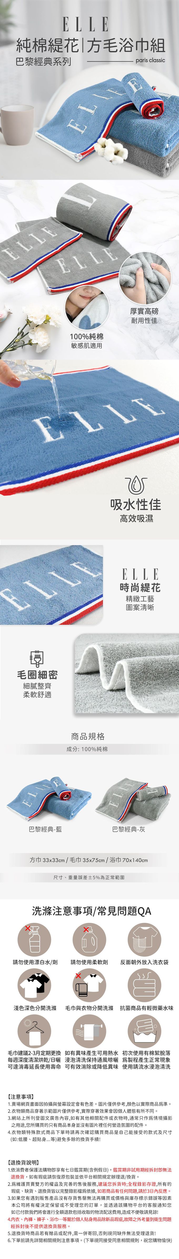 品名:鬆厚純棉ELLE緹花毛巾.浴巾2件組(各1條)