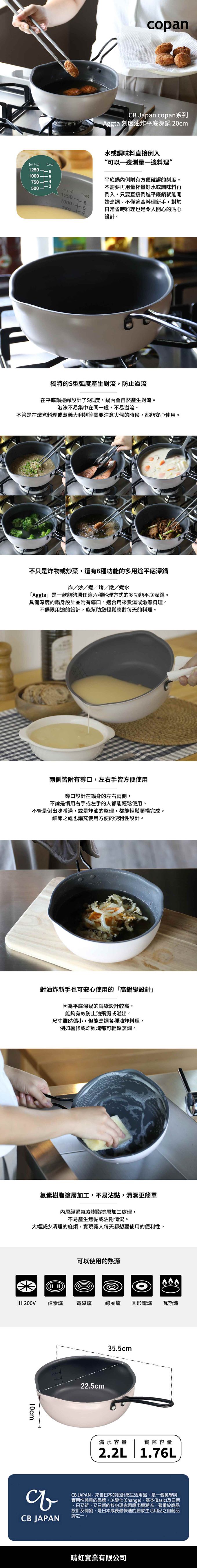 此款鍋具具有獨特的S型弧度設計,鍋內會自然產生對流,泡沫不易集中在同一處並防止溢流。鍋具兩側附有注水口,左右手皆方便使用。具有炸、炒、煮、烤、燉、煮水等多功能可烹調方式,能幫助您輕鬆應對日常的烹調料理。