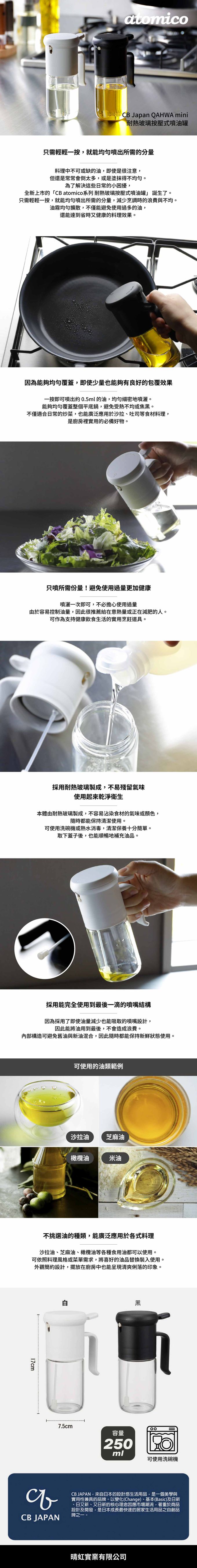 只需輕輕一按的「耐熱玻璃按壓式噴油罐」,一按即可噴出約 0.5ml 的油量,即使少量也能夠有良好的包覆效果,減少烹調時的浪費與不均。不僅能夠避免使用過多的油,還能達到省時又健康的料理效果。採用耐熱玻璃製成,不易殘留氣味,使用起來乾淨衛生。