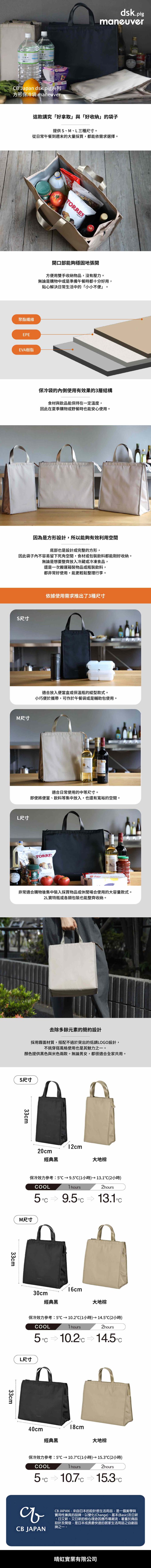 這是一款「好拿取」且「好收納」的保冷袋,有S、M、L 三種尺寸,從日常午餐到大量採購能依需求選擇使用。方形設計,能夠有效利用空間,不易留下多餘空間,食材或包裝飲料皆能剛好收納。霧面簡約設計,不挑穿搭風格,無論男女皆適合日常使用。