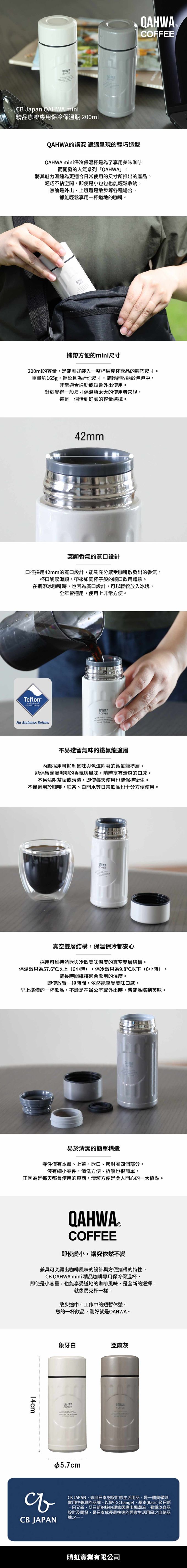 • 品名:QAHWA mini 精品咖啡專用保冷保溫瓶 200ml