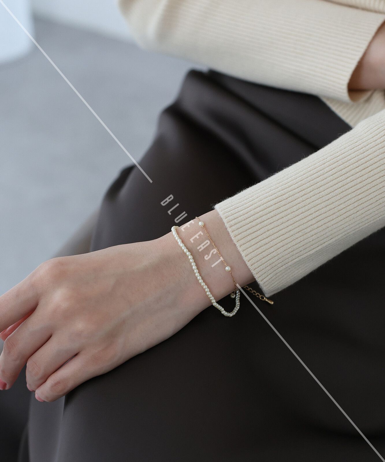 日本 BLUE EAST - 韓國製 精緻雙珍珠造型美人手鍊-銀