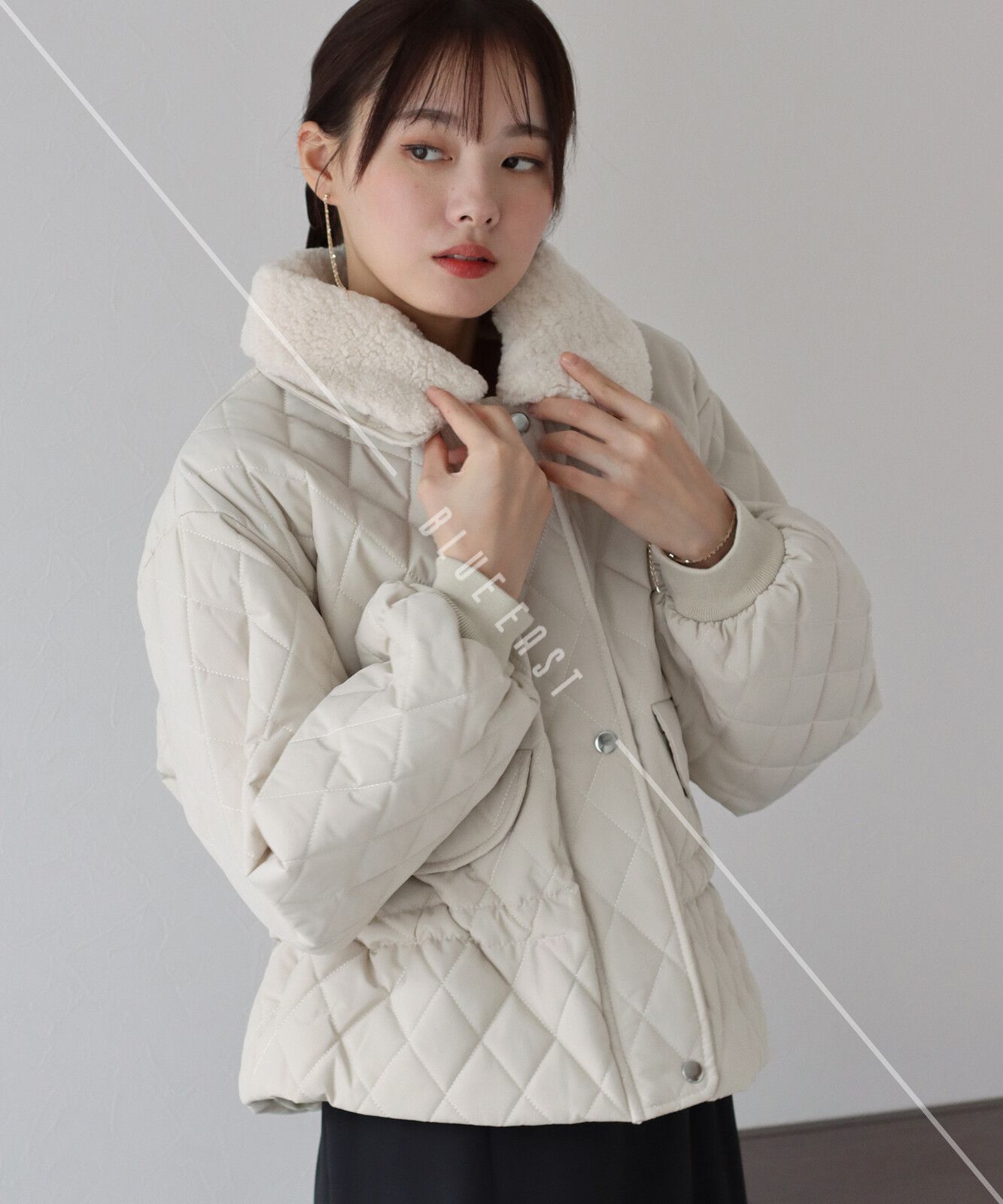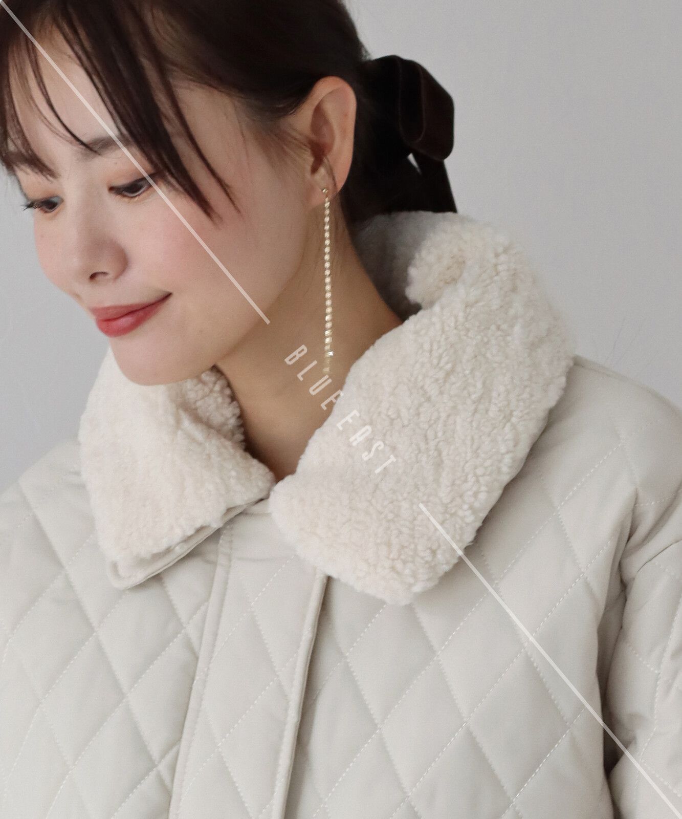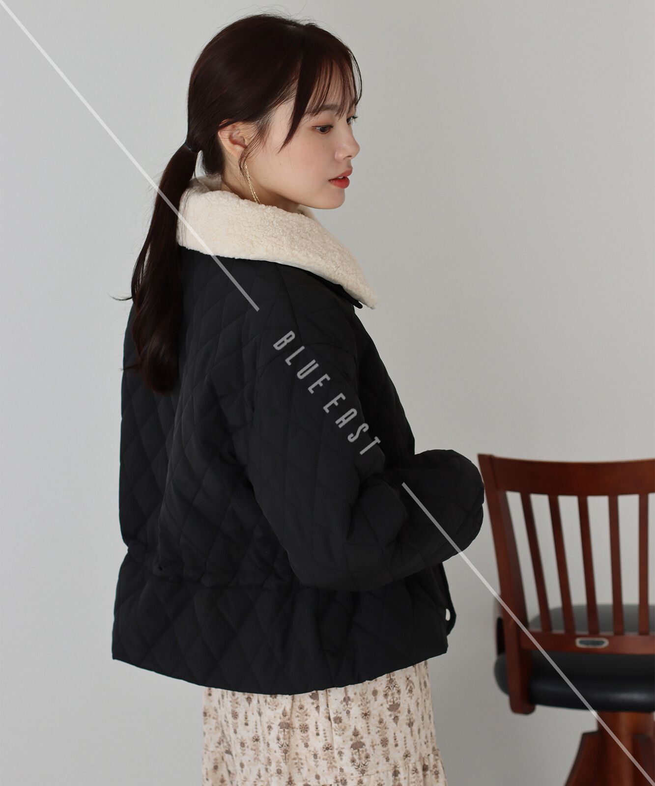 日本 BLUE EAST - 俐落翻領絎縫束腰短版外套-(毛絨領可拆)-象牙白