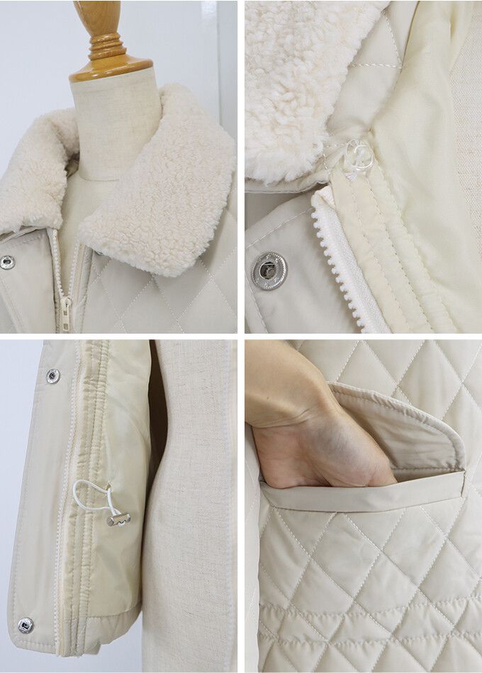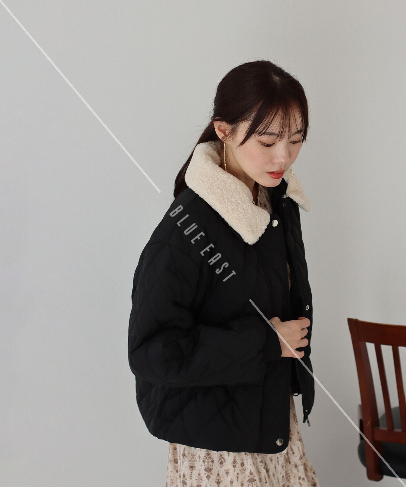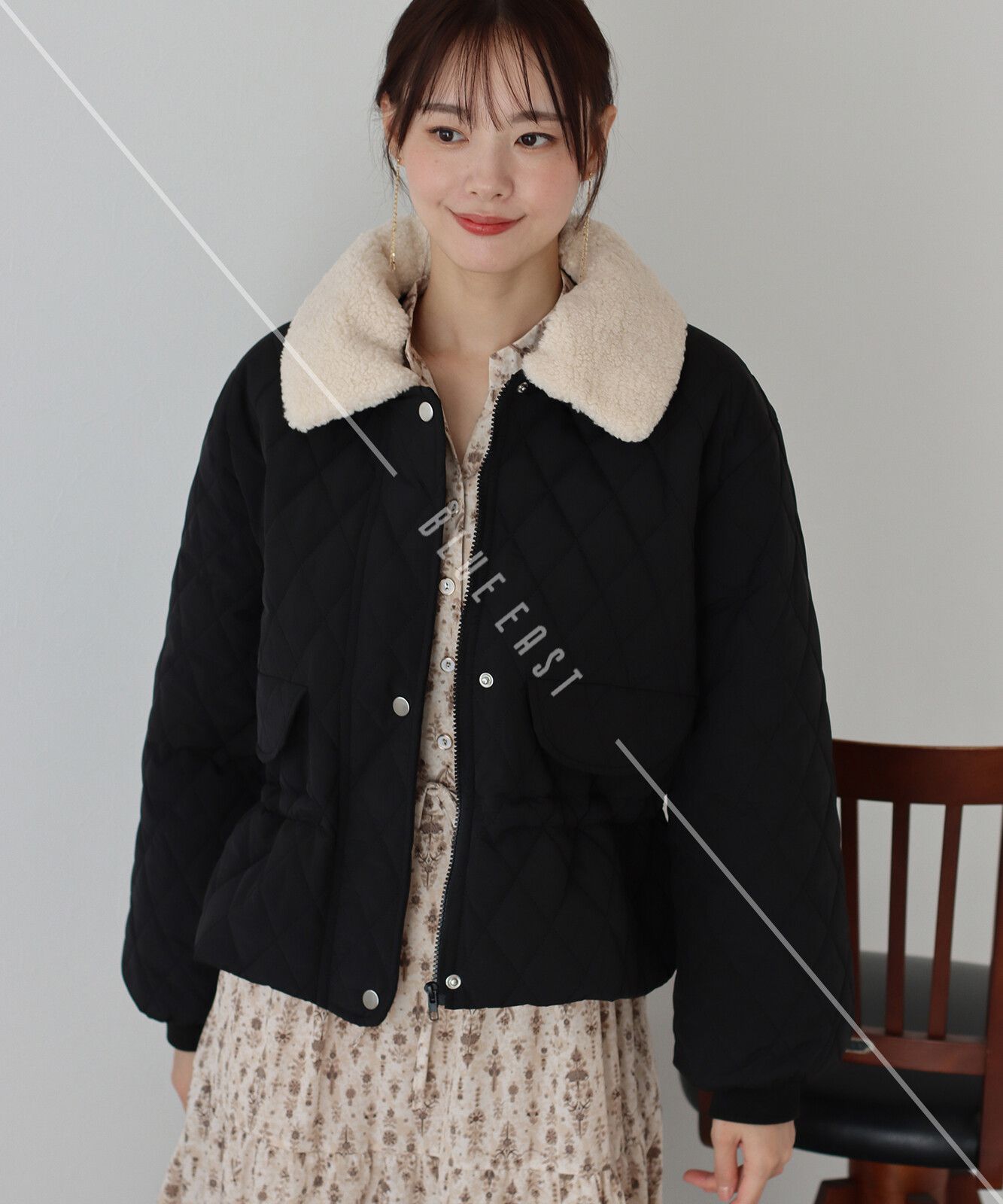 日本 BLUE EAST - 俐落翻領絎縫束腰短版外套-(毛絨領可拆)-象牙白