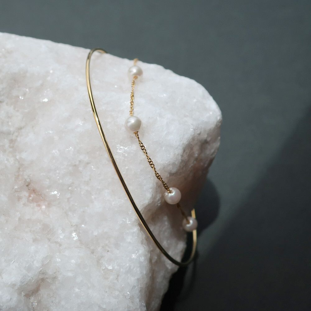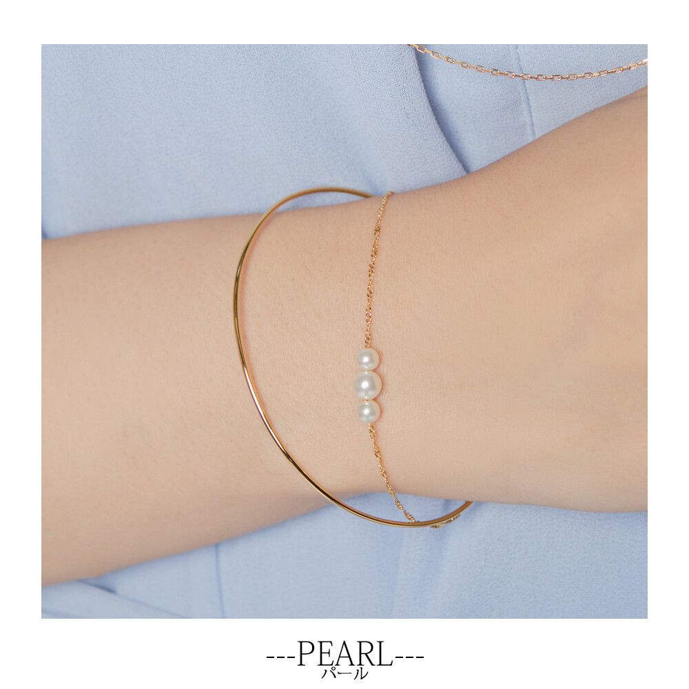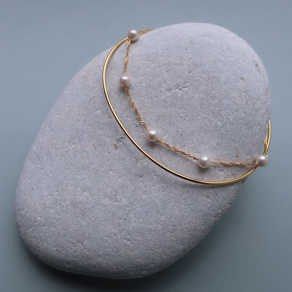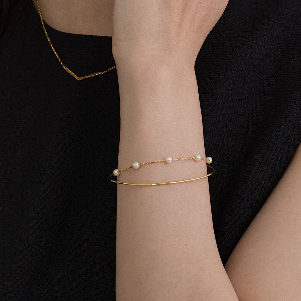 日本 Melody Accessory - 日本製 柔美細緻雙層手鏈-三顆珍珠-金