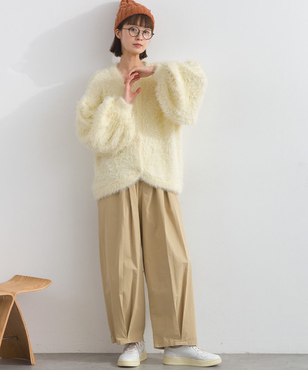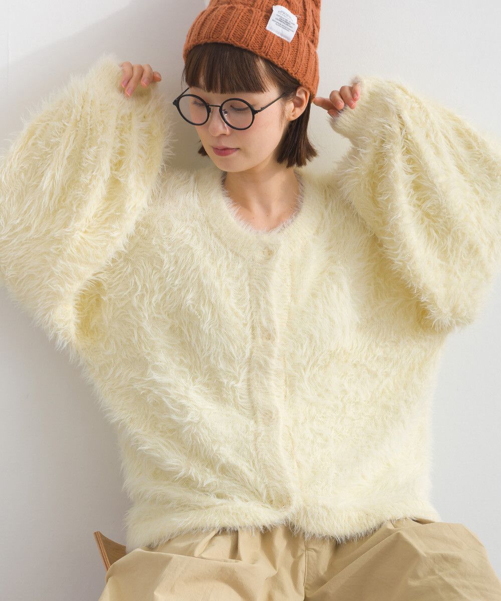 日本 Lupilien - 柔和蓬鬆毛海繭型針織開襟衫/外套-米白