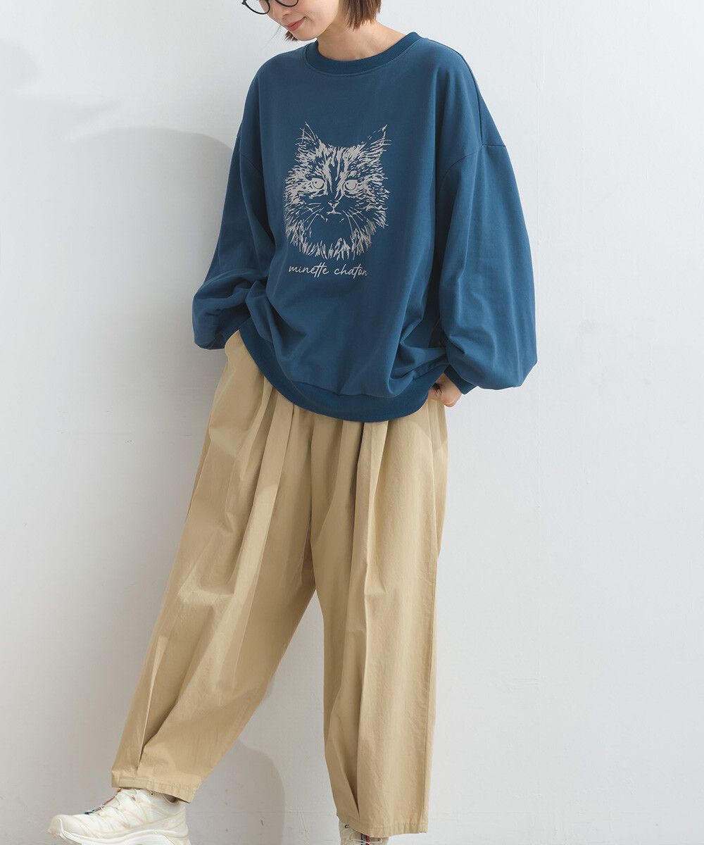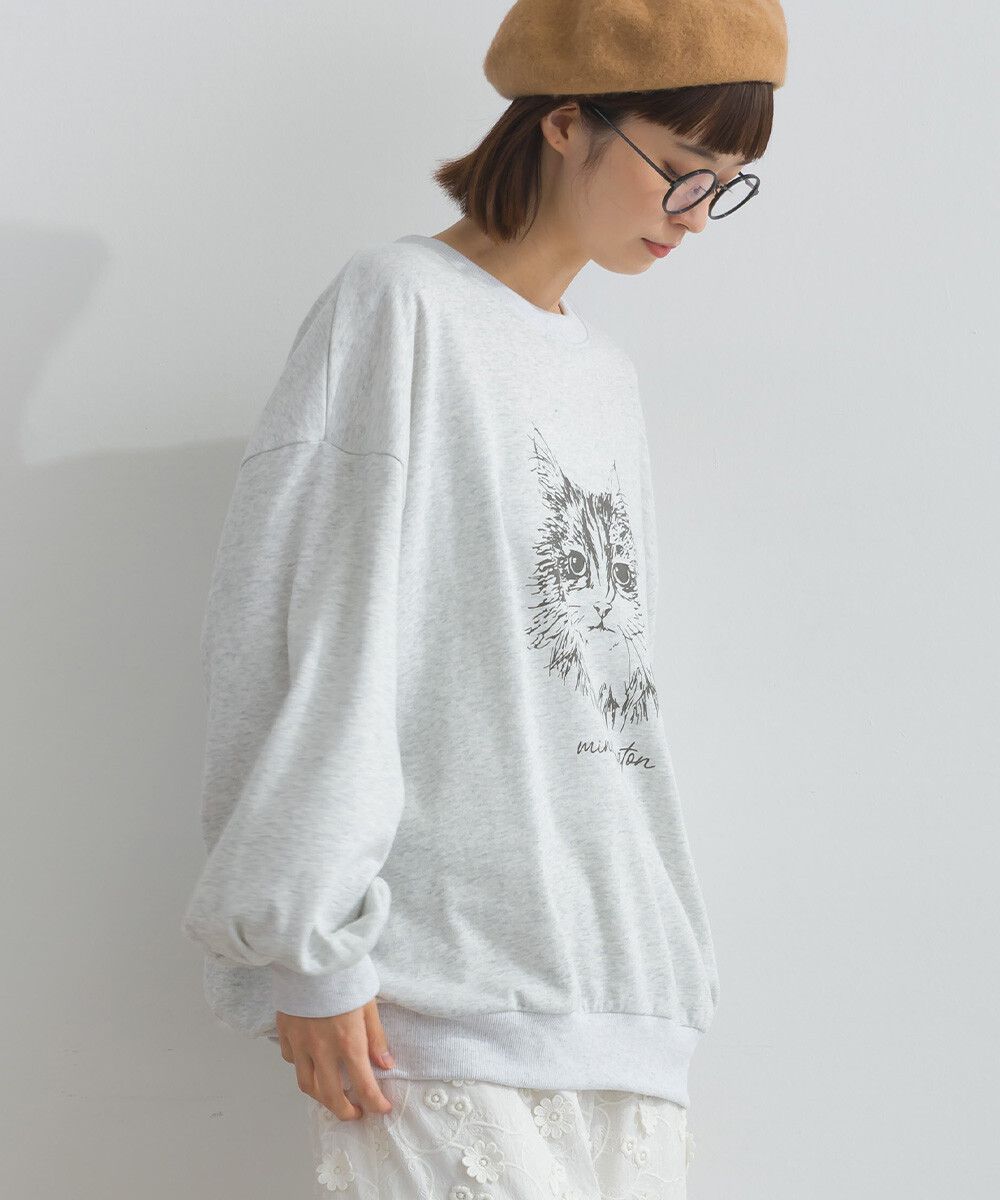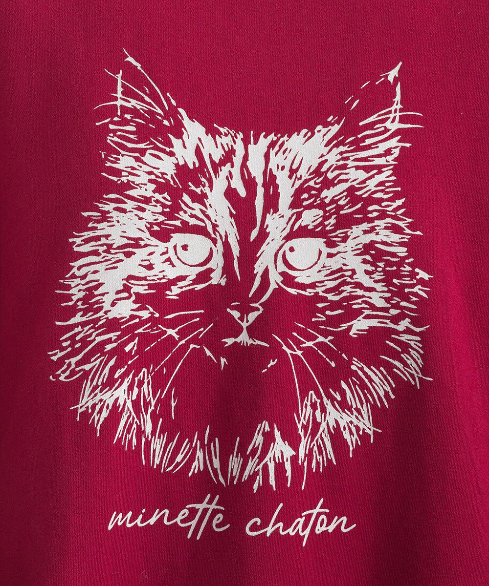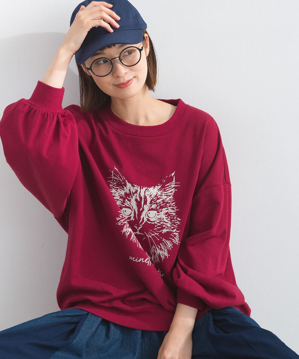 日本 Lupilien - 線條貓咪印花裏毛長袖上衣-黑