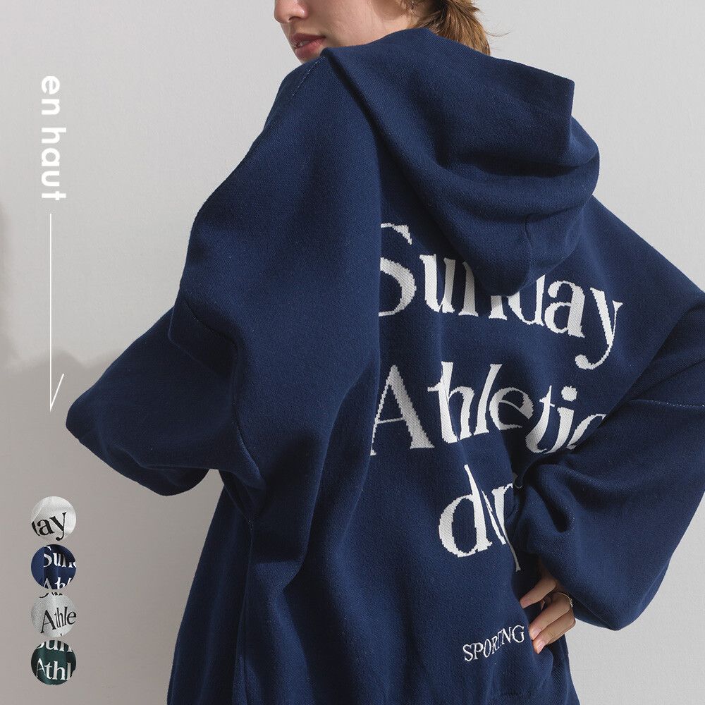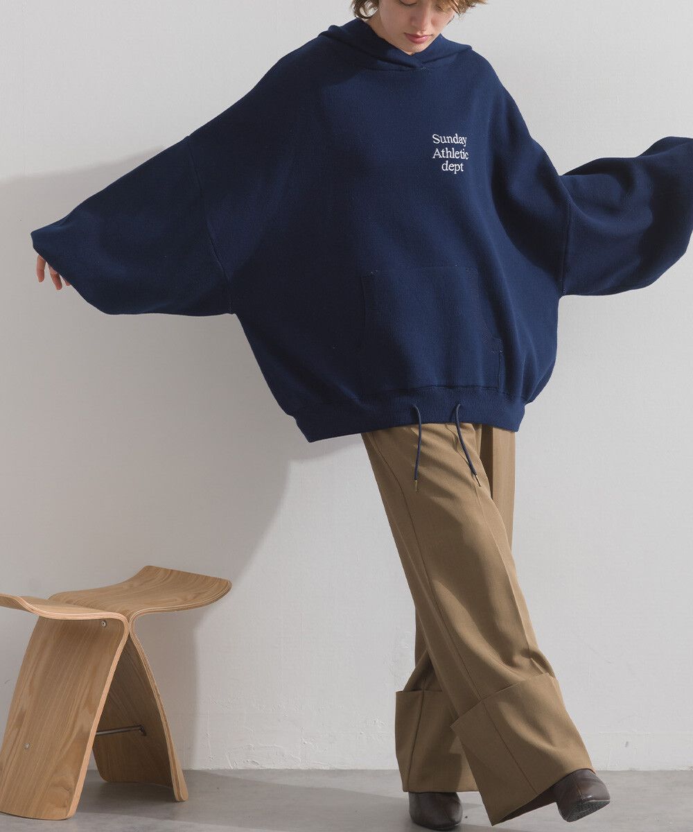 日本 Lupilien - Sunday休閒寬大版型針織帽T-海軍藍
