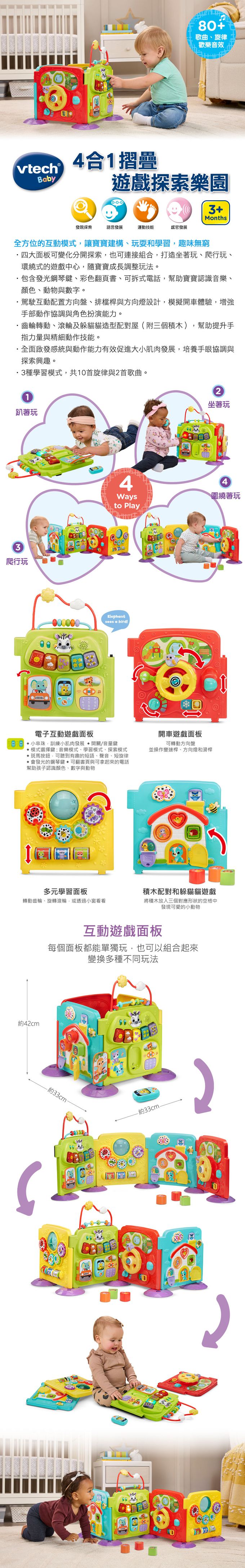 ‧四大面板可變化分開探索,也可連接組合,打造坐著玩、爬行玩、環繞式的遊戲中心,隨寶寶成長調整玩法。