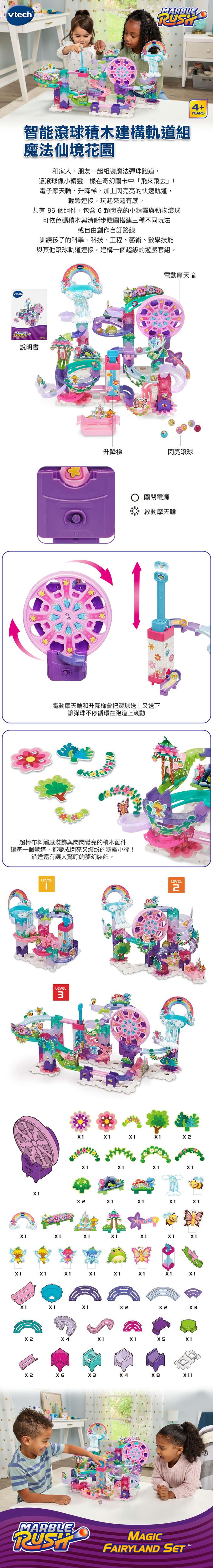 電子摩天輪、升降梯,加上閃亮亮的快速軌道,輕鬆連接,玩起來超有感。