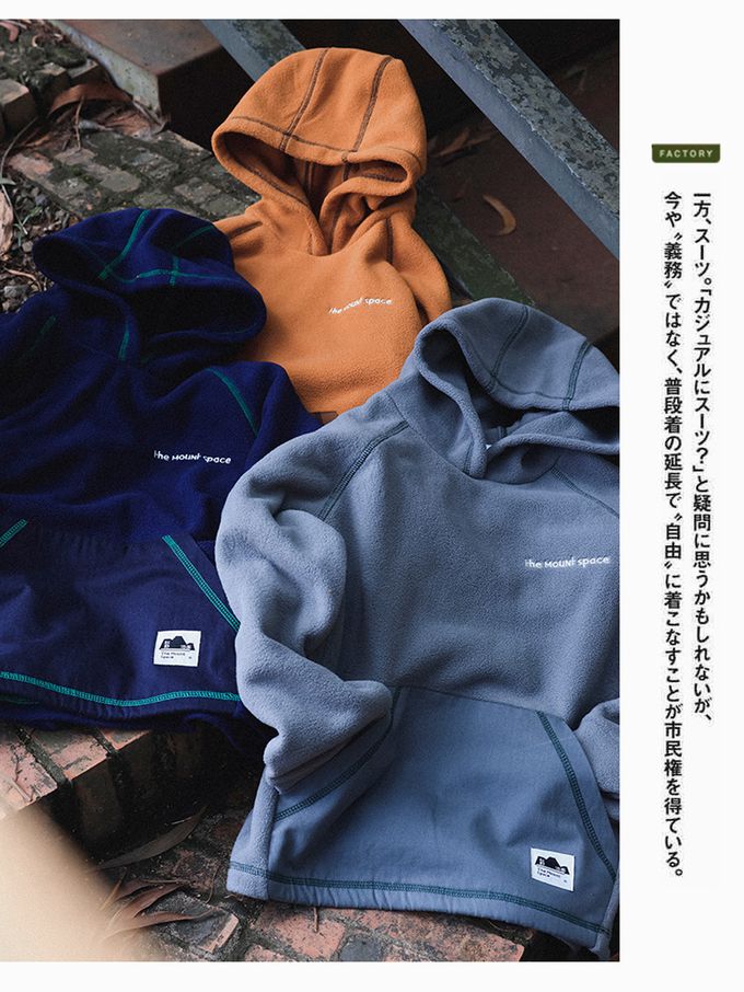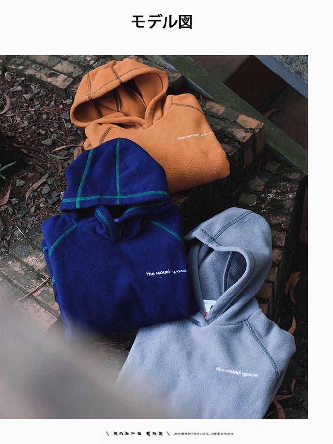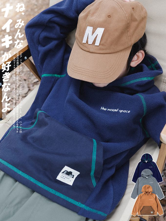 撞色車線搖粒絨長袖連帽上衣-藏青