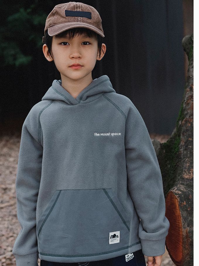 品名:撞色車線搖粒絨長袖連帽上衣