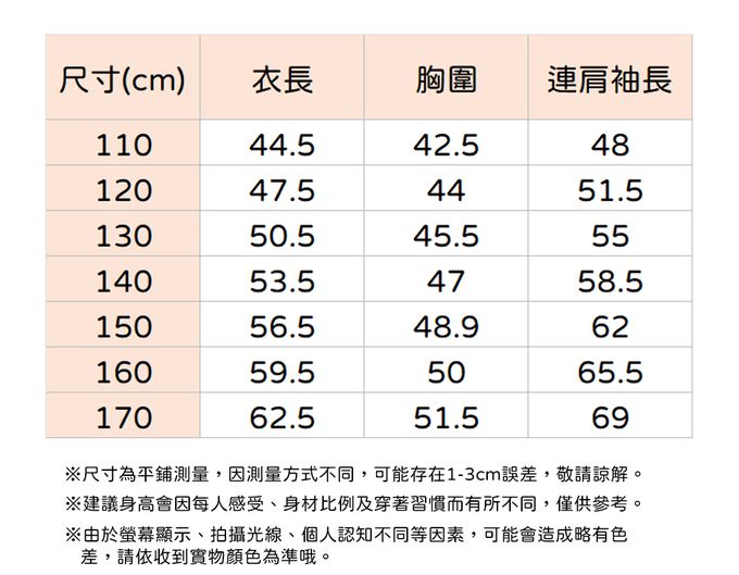 110cm、120cm、130cm、140cm、150cm、160cm、170cm