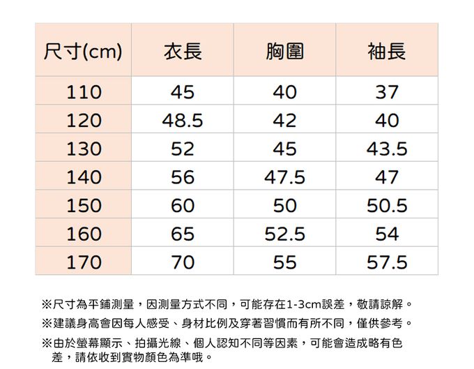 110cm、120cm、130cm、140cm、150cm、160cm、170cm