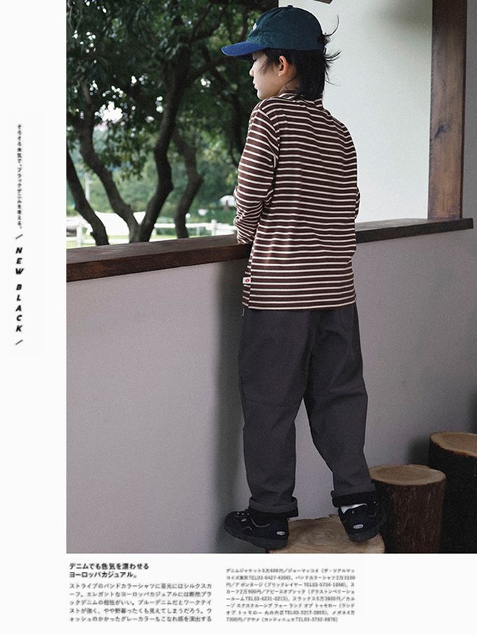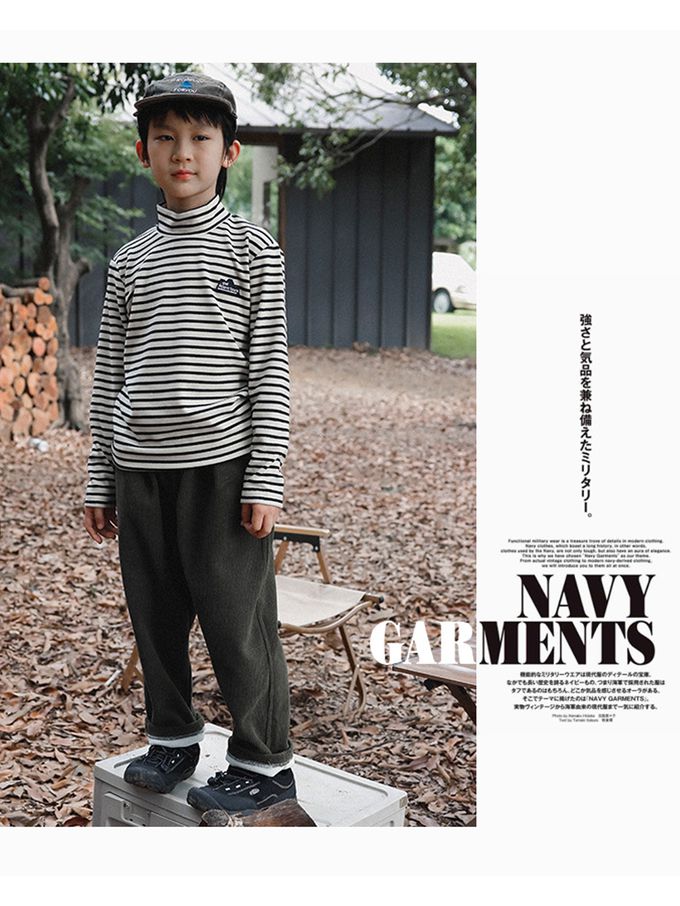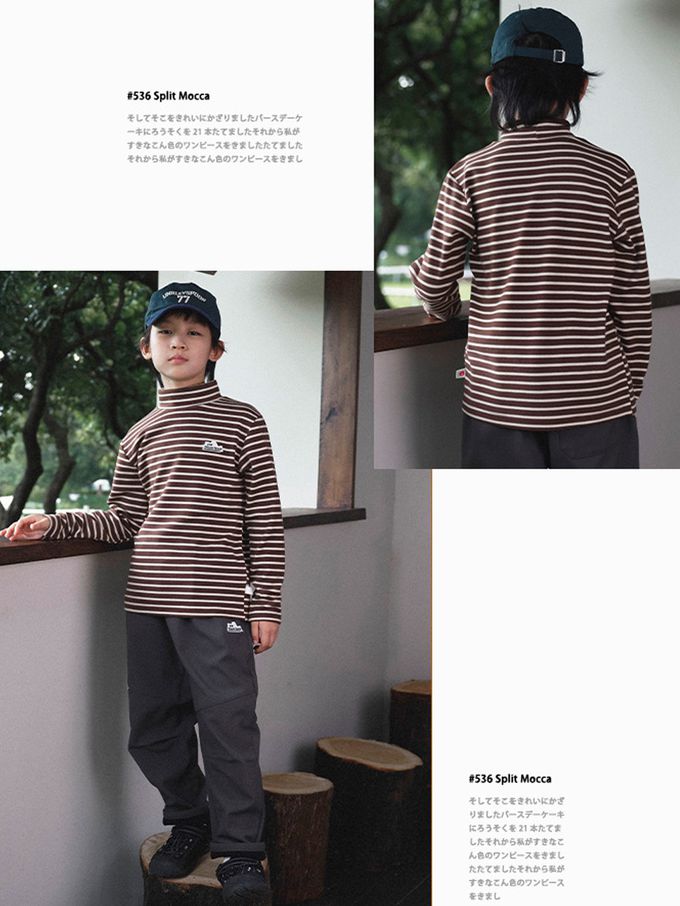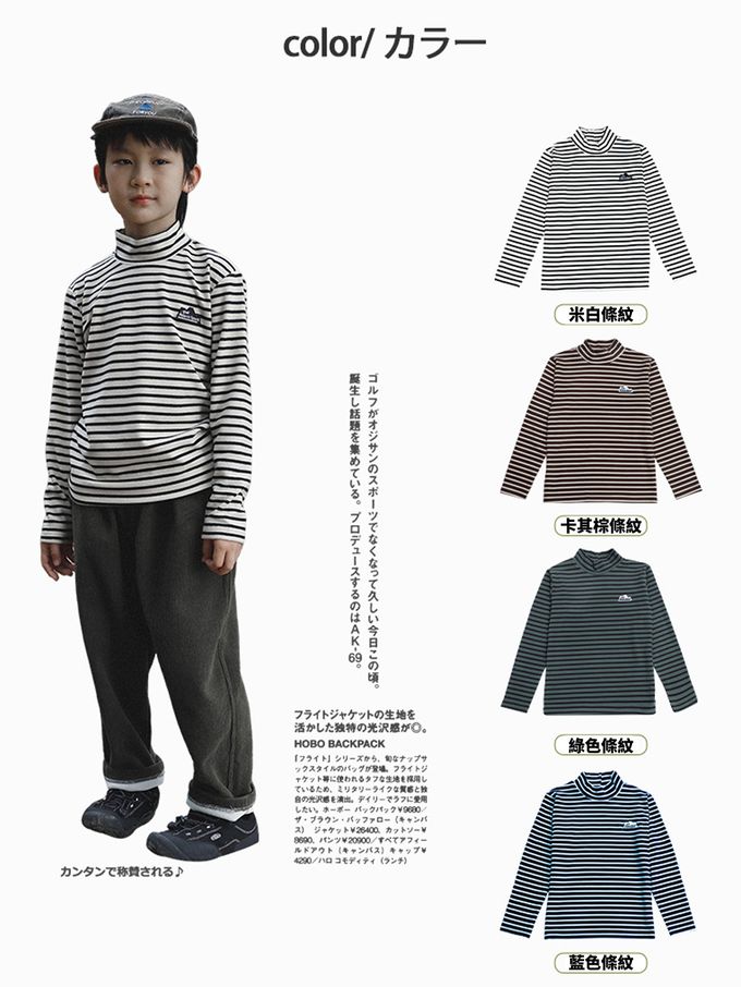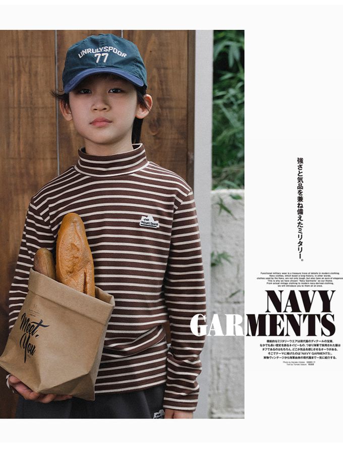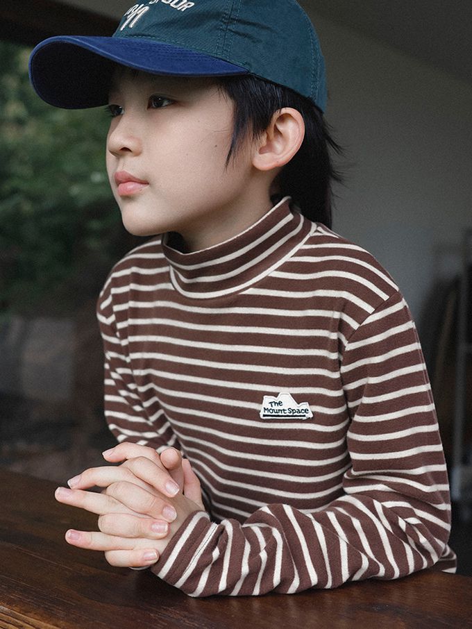 Y B S - 德絨保暖半高領長袖上衣-卡其棕條紋