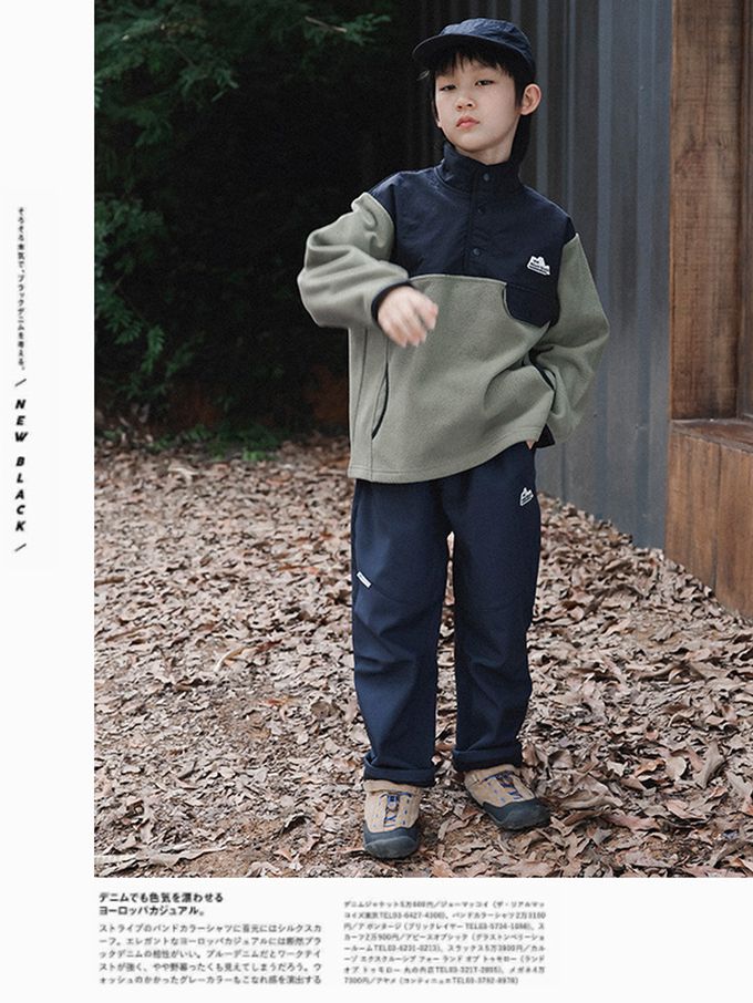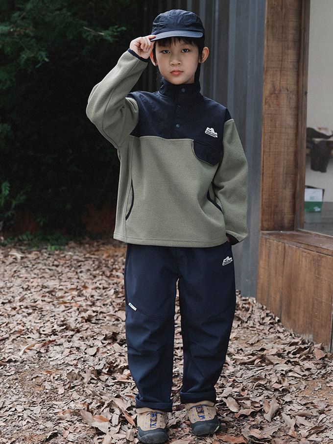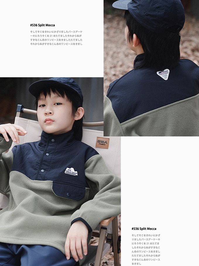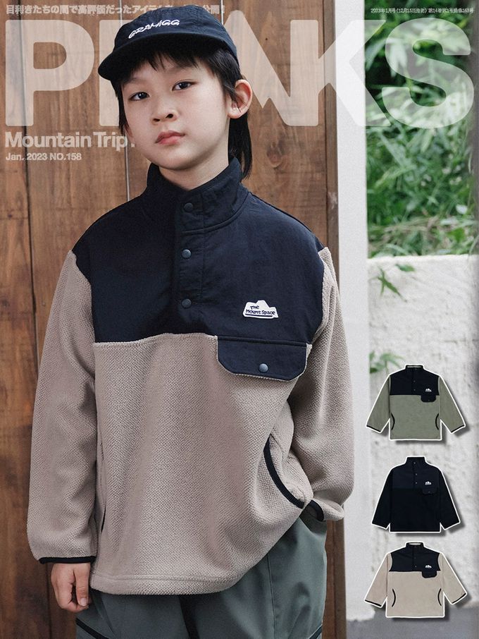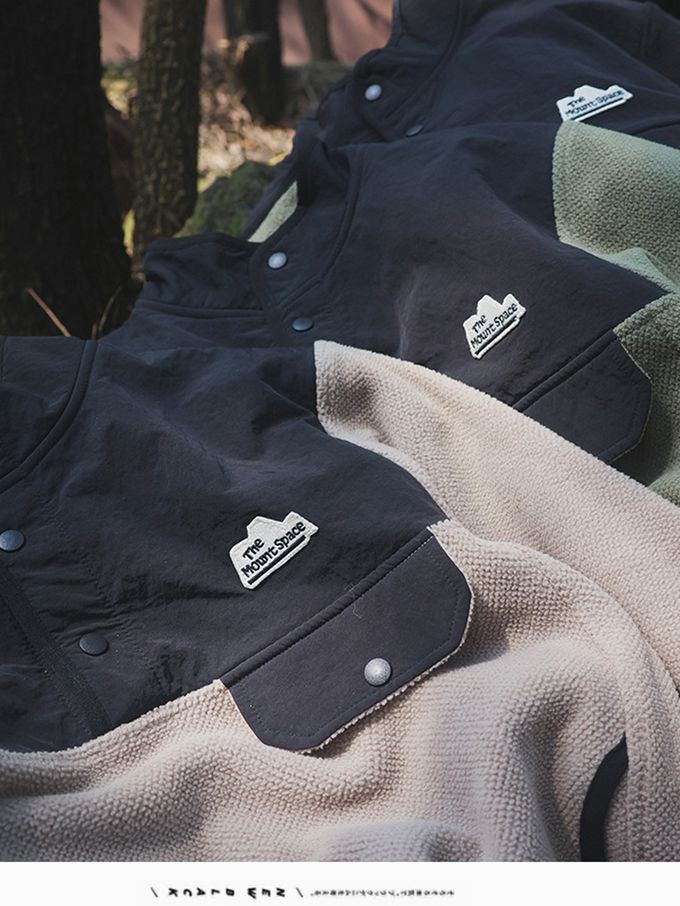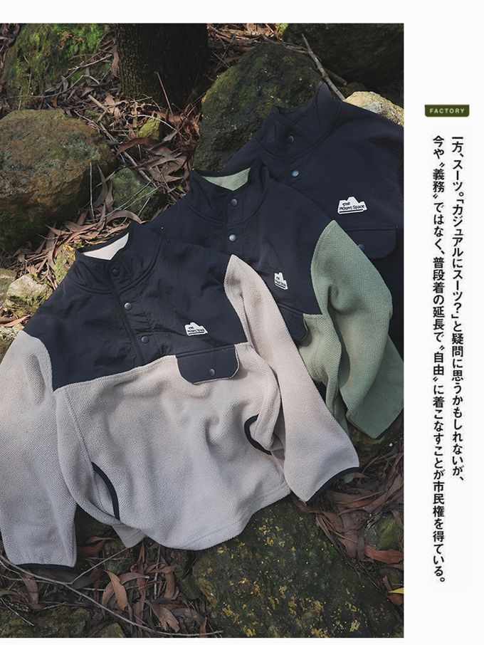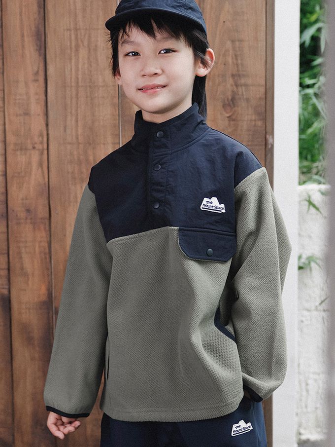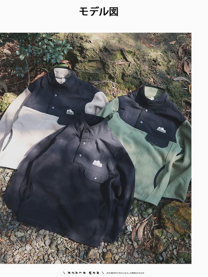 Y B S - 山系刷絨拼接半開襟長袖上衣-黑色