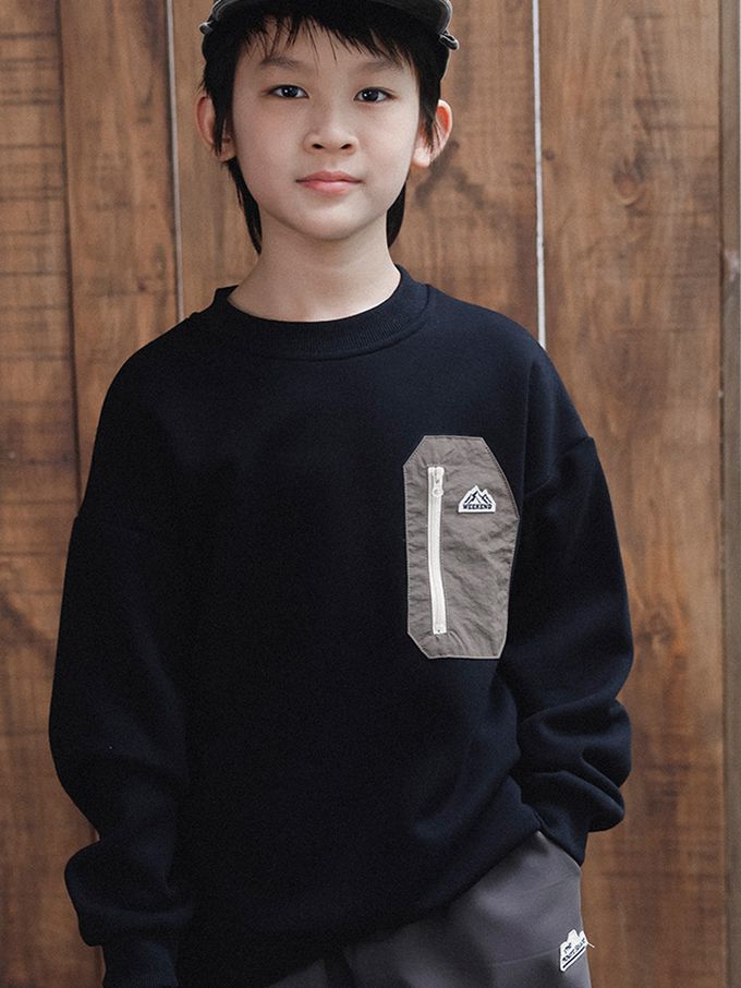 品名:保暖加絨口袋拼接長袖上衣/大學T