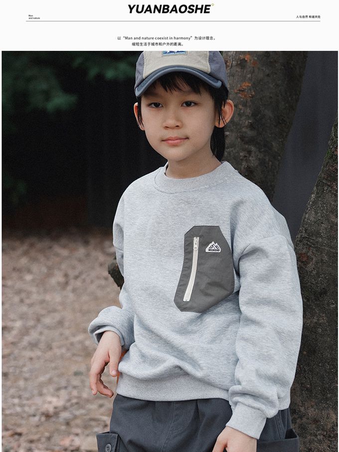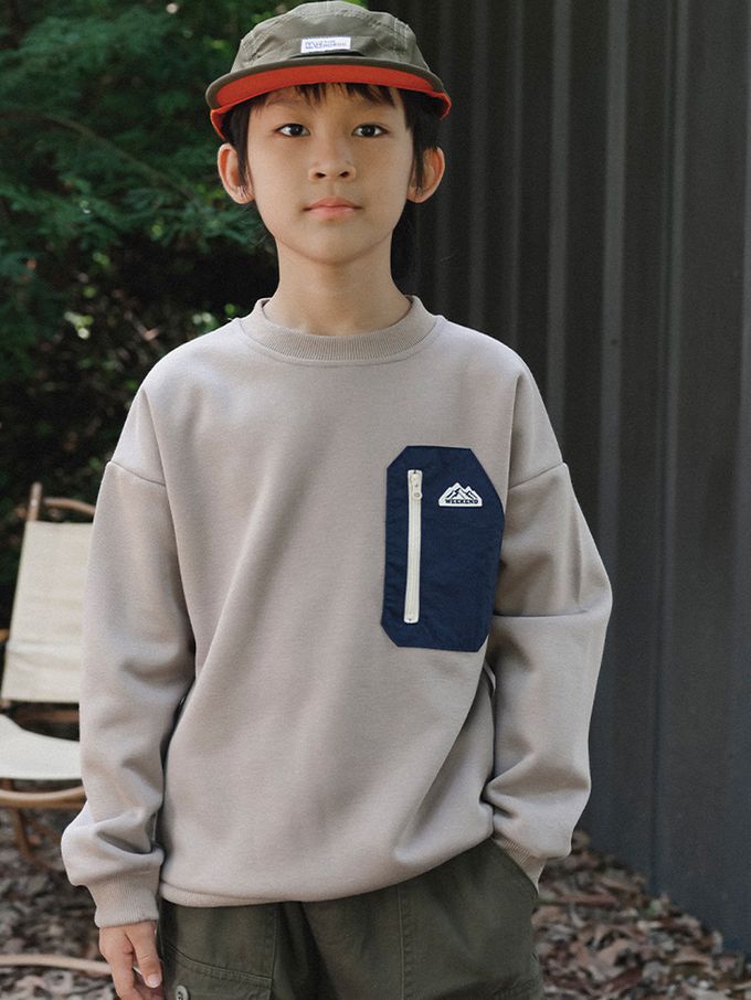 品名:保暖加絨口袋拼接長袖上衣/大學T