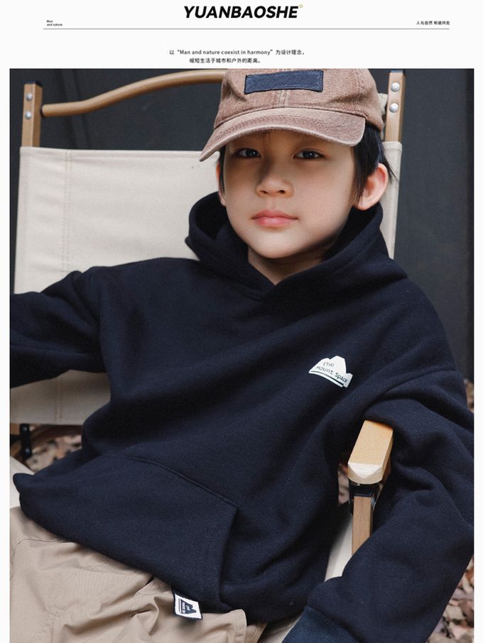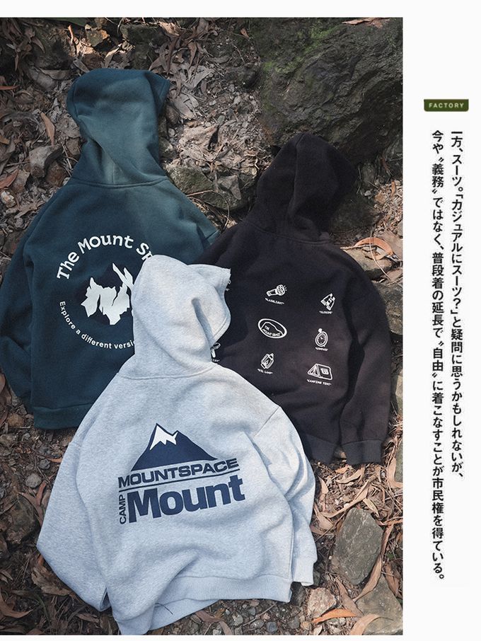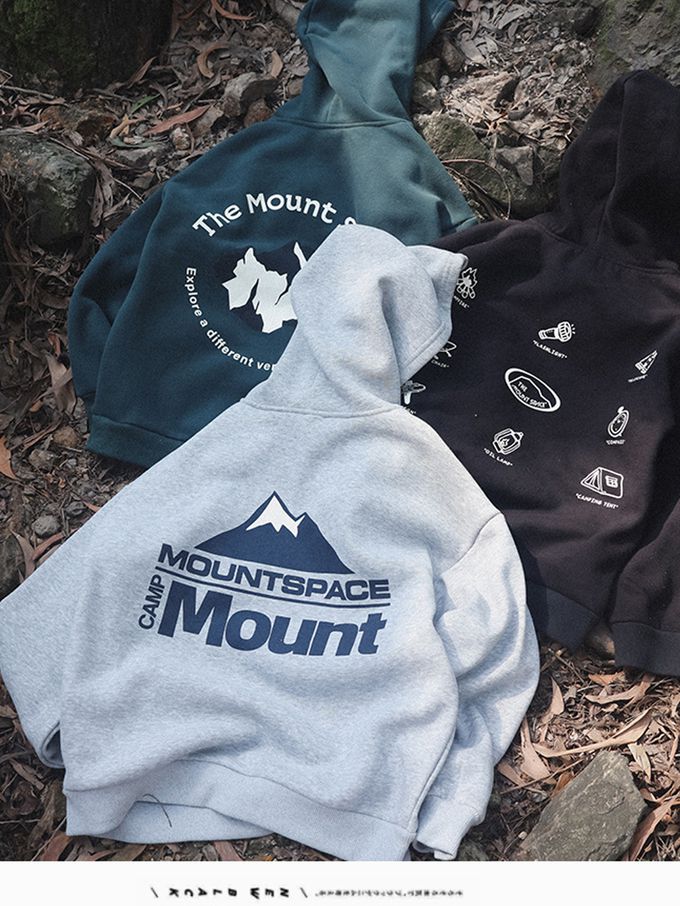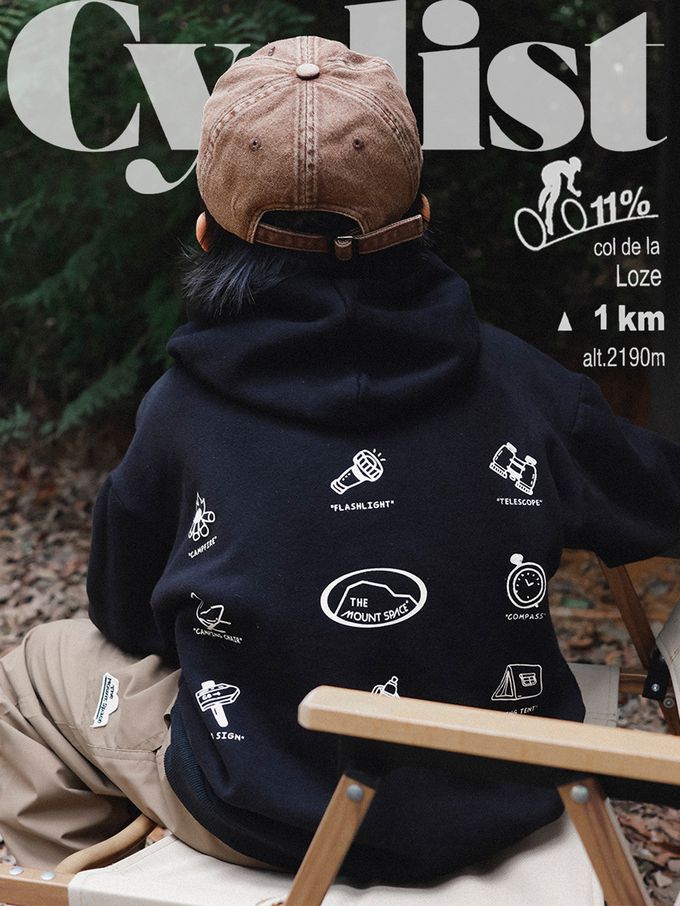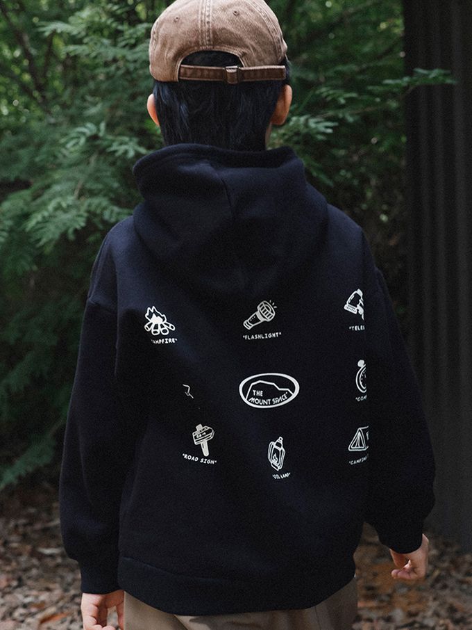 Y B S - 保暖加絨山系印花連帽長袖上衣-黑色