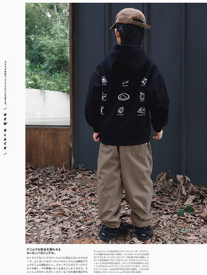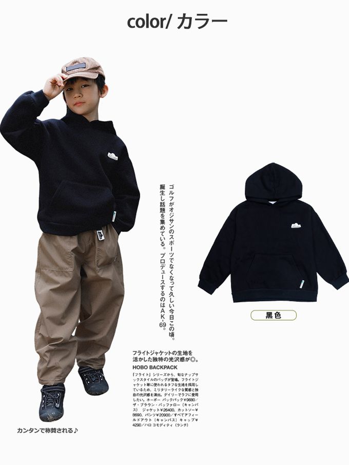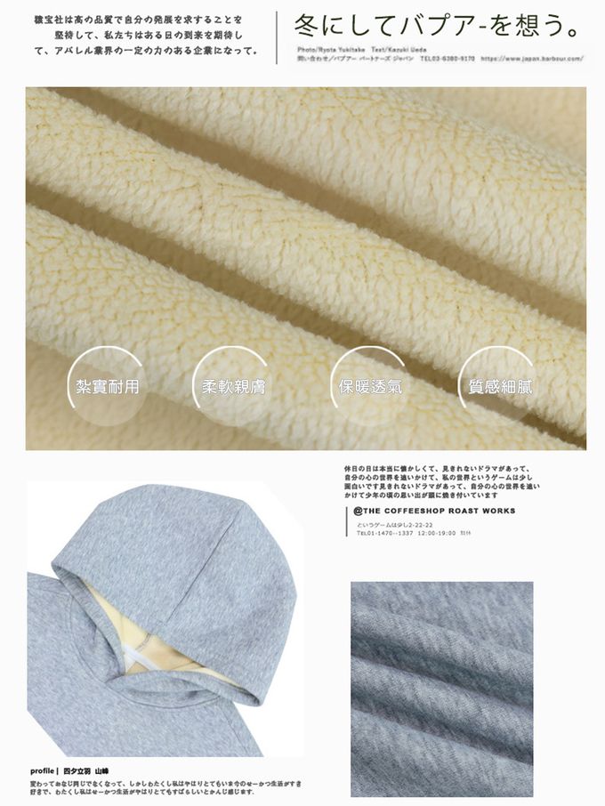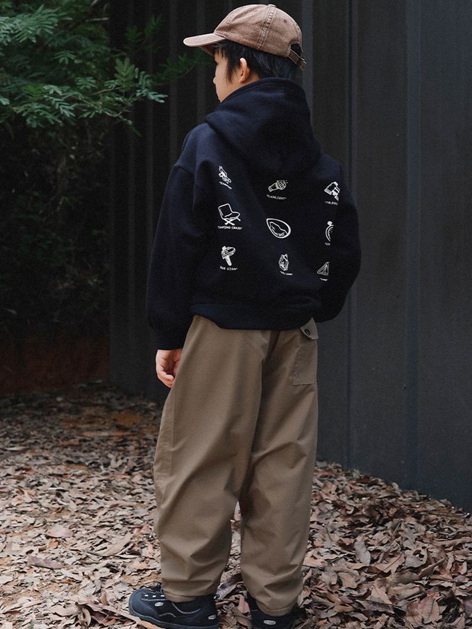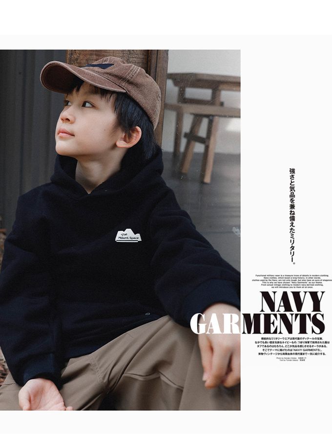 Y B S - 保暖加絨山系印花連帽長袖上衣-黑色