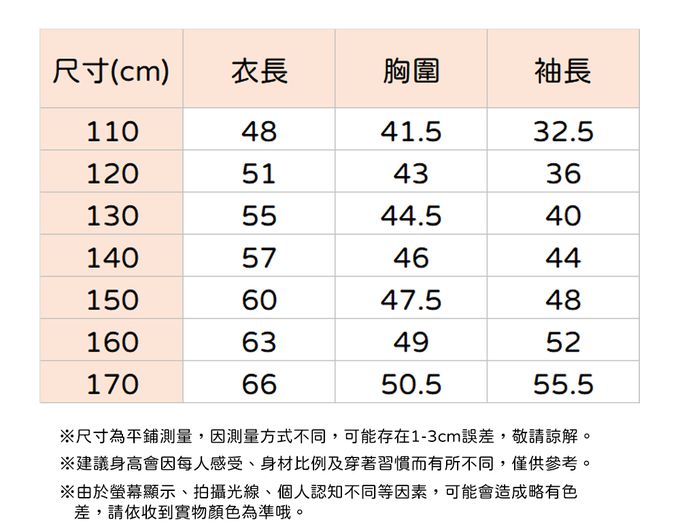 110cm、120cm、130cm、140cm、150cm、160cm、170cm