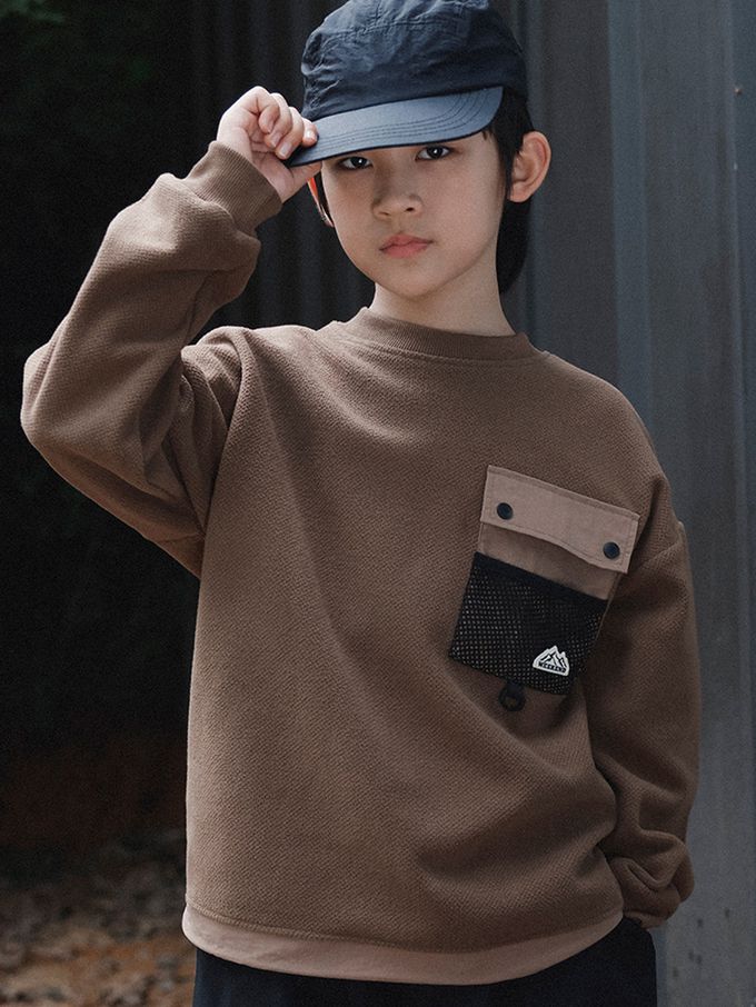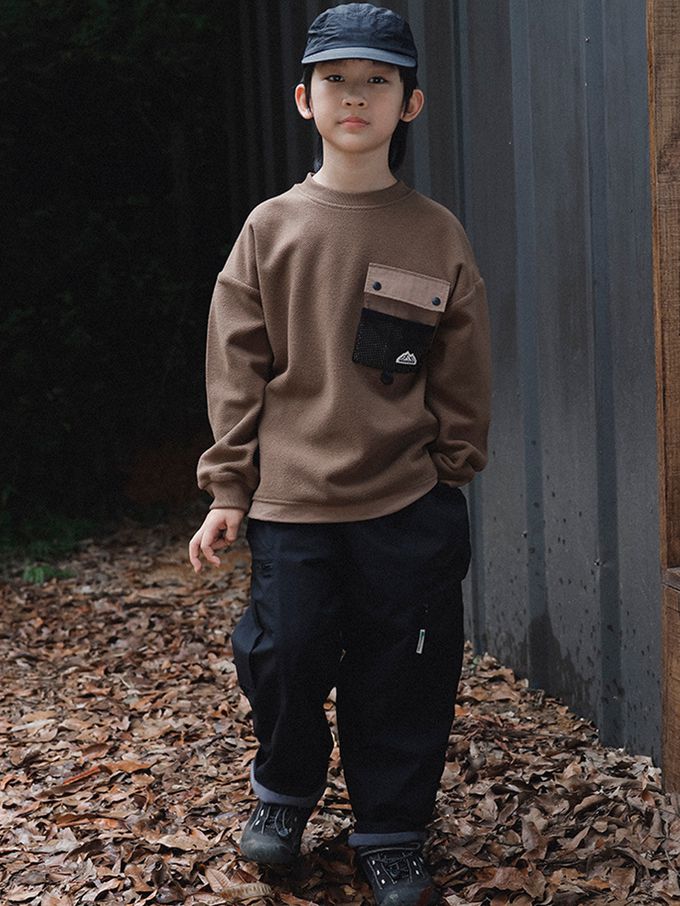 保暖刷絨下擺抽繩防風長袖上衣-咖啡色