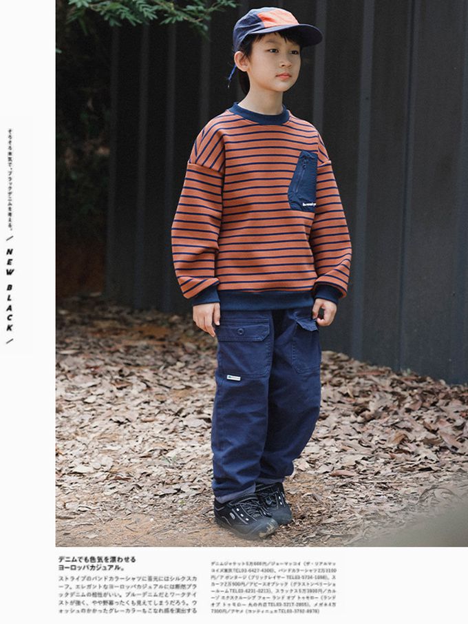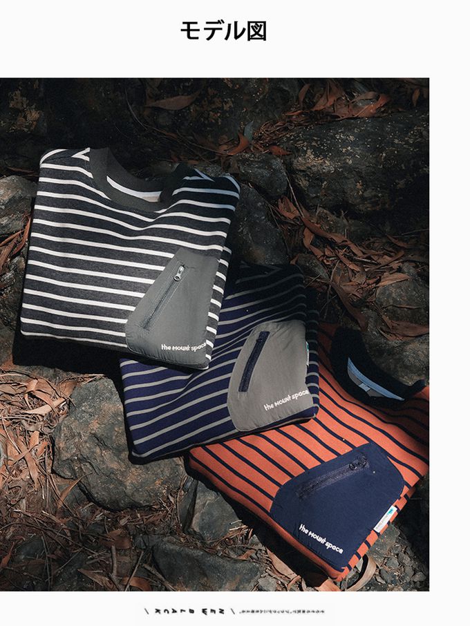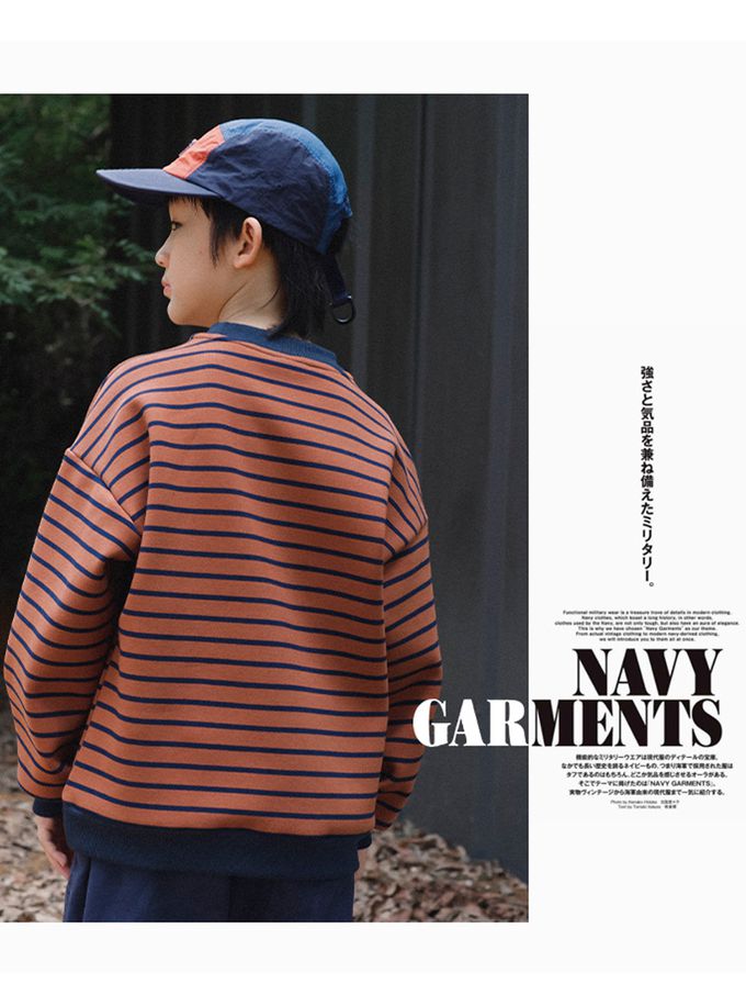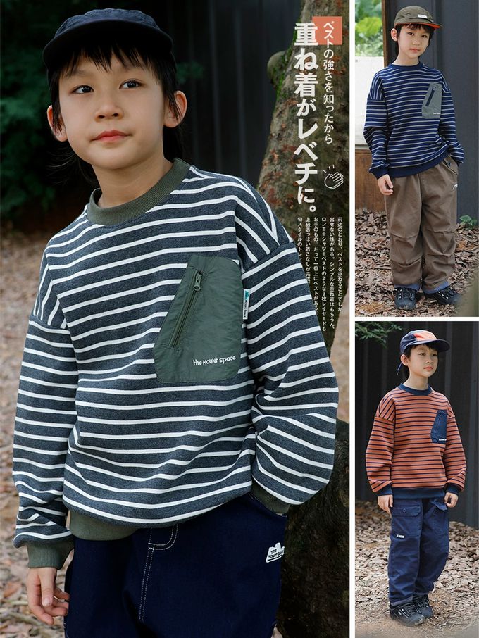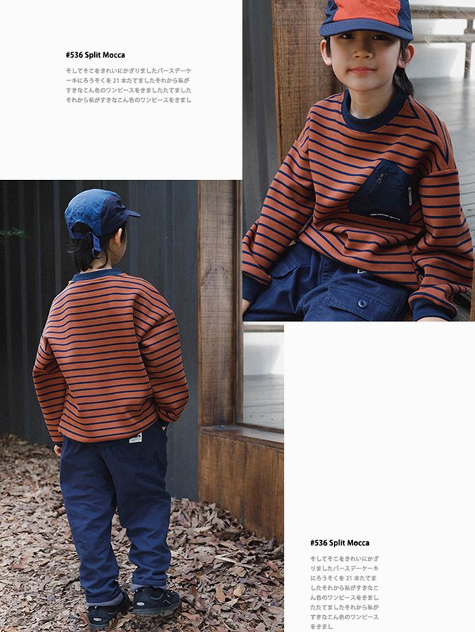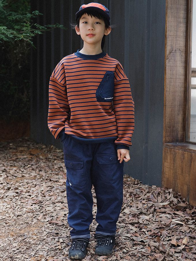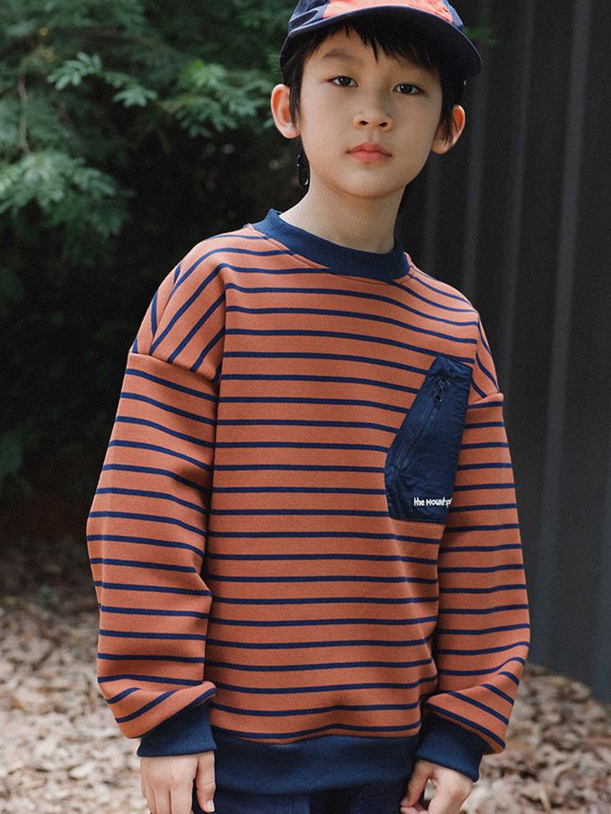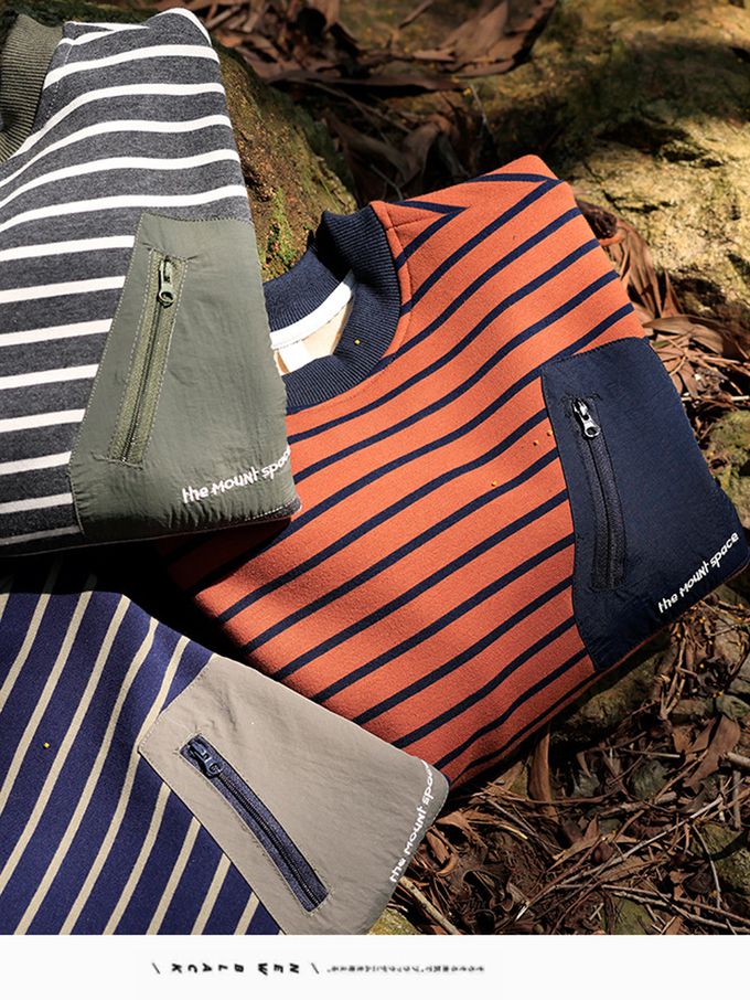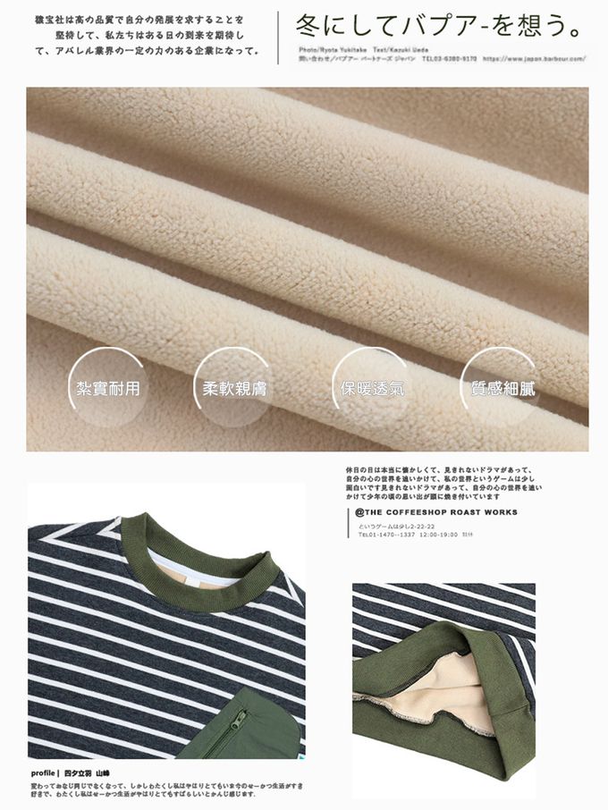 保暖加絨口袋拼接長袖上衣/大學T-橘棕條紋