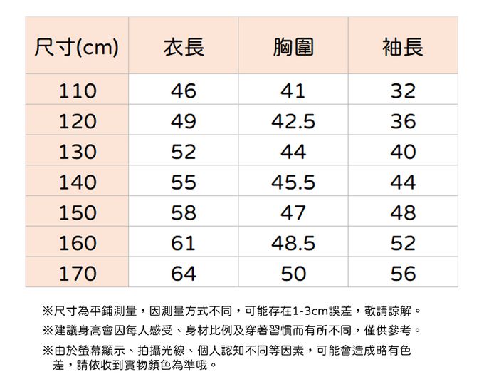 110cm、120cm、130cm、140cm、150cm、160cm、170cm