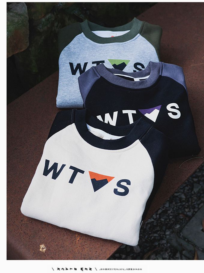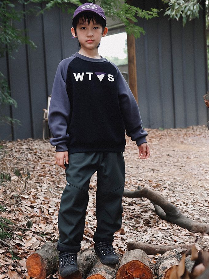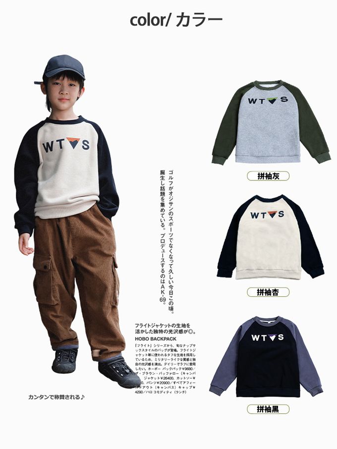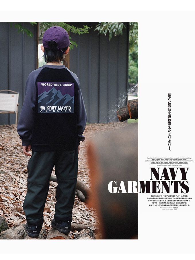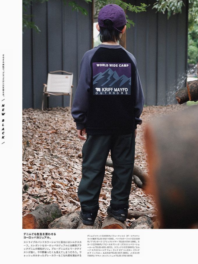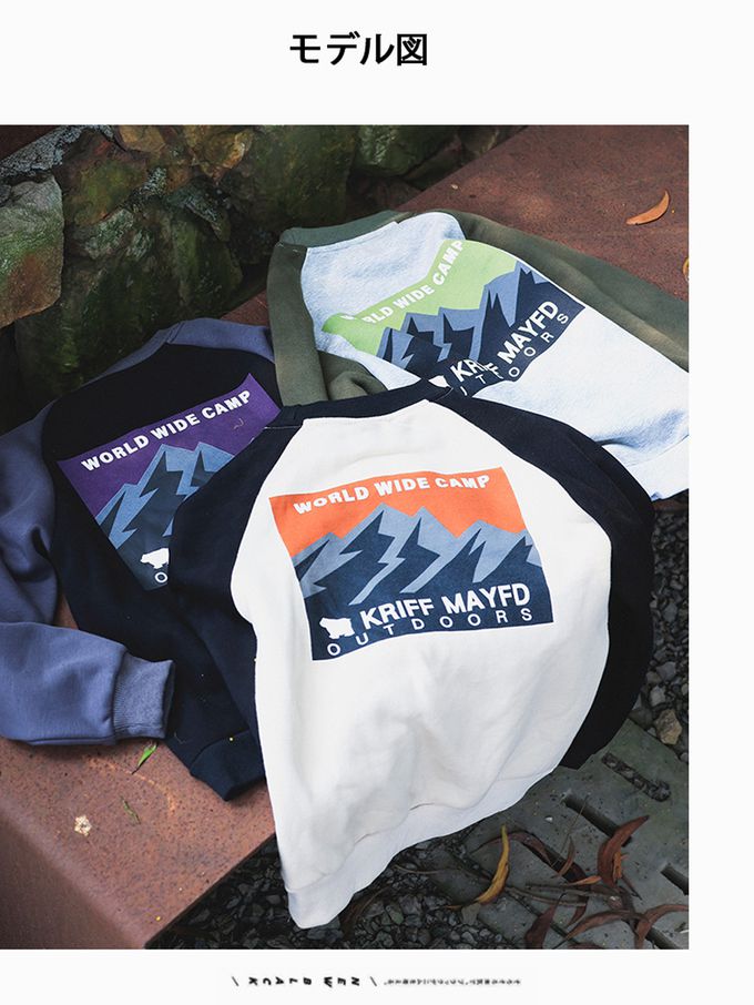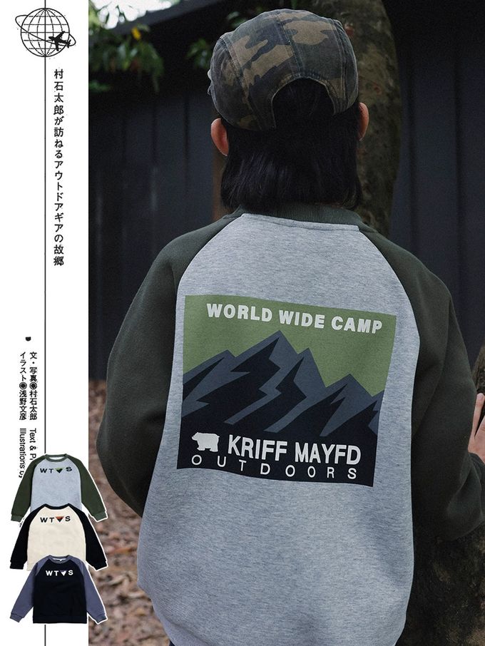 Y B S - 保暖加絨長袖上衣/大學T-山系印花-拼袖黑