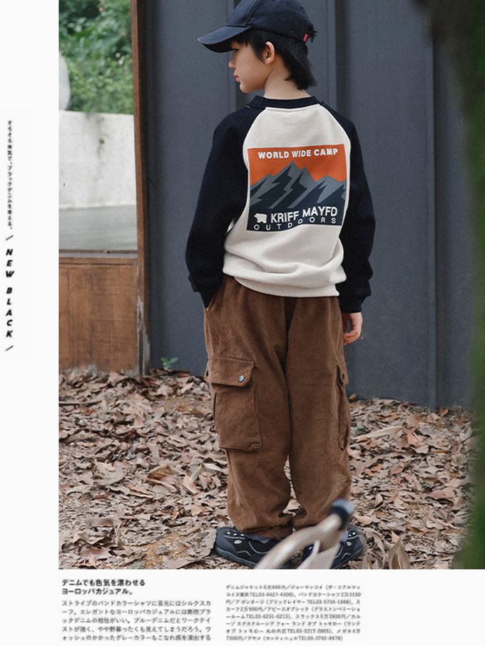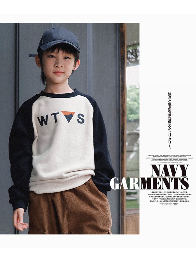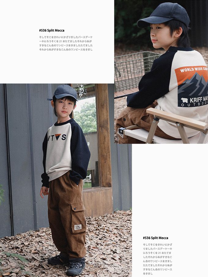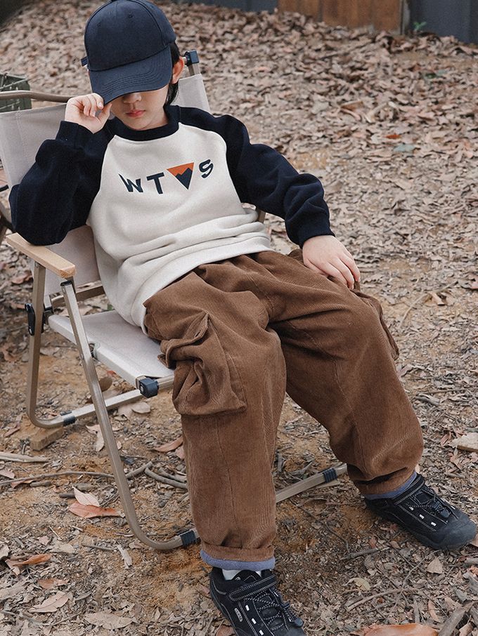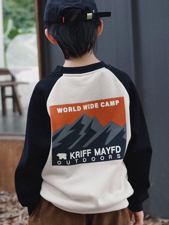 Y B S - 保暖加絨長袖上衣/大學T-山系印花-拼袖杏