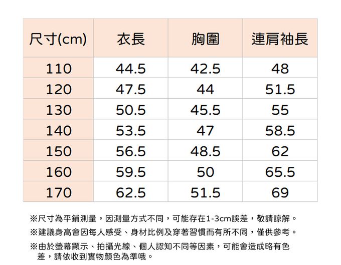 110cm、120cm、130cm、140cm、150cm、160cm、170cm