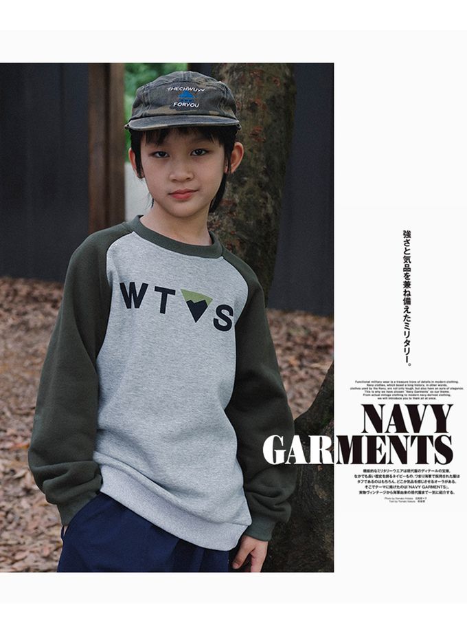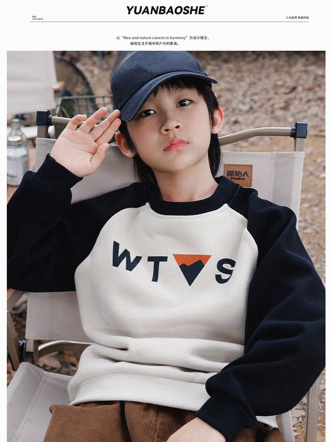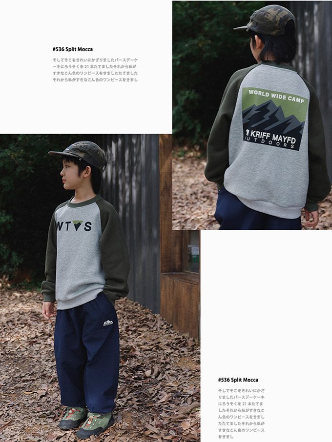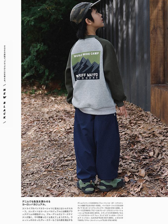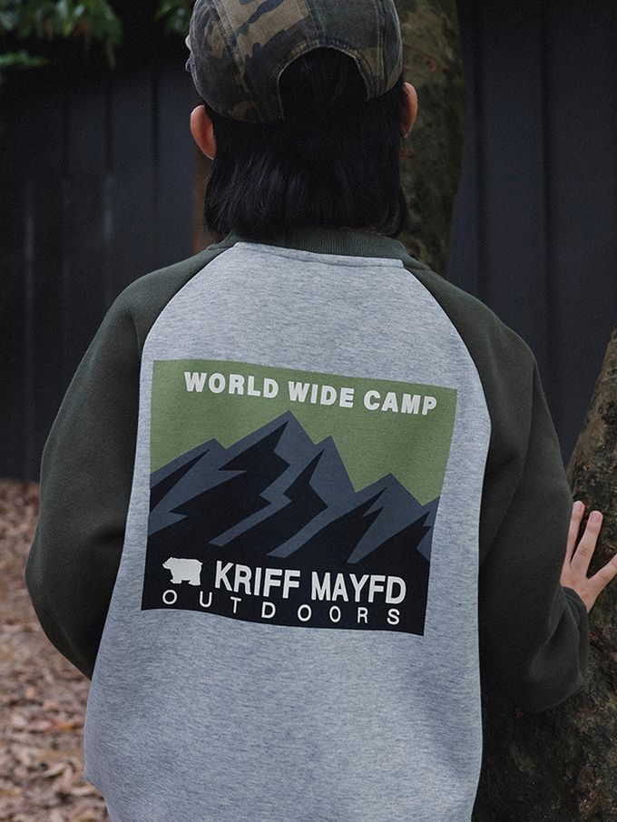 保暖加絨長袖上衣/大學T-山系印花-拼袖灰