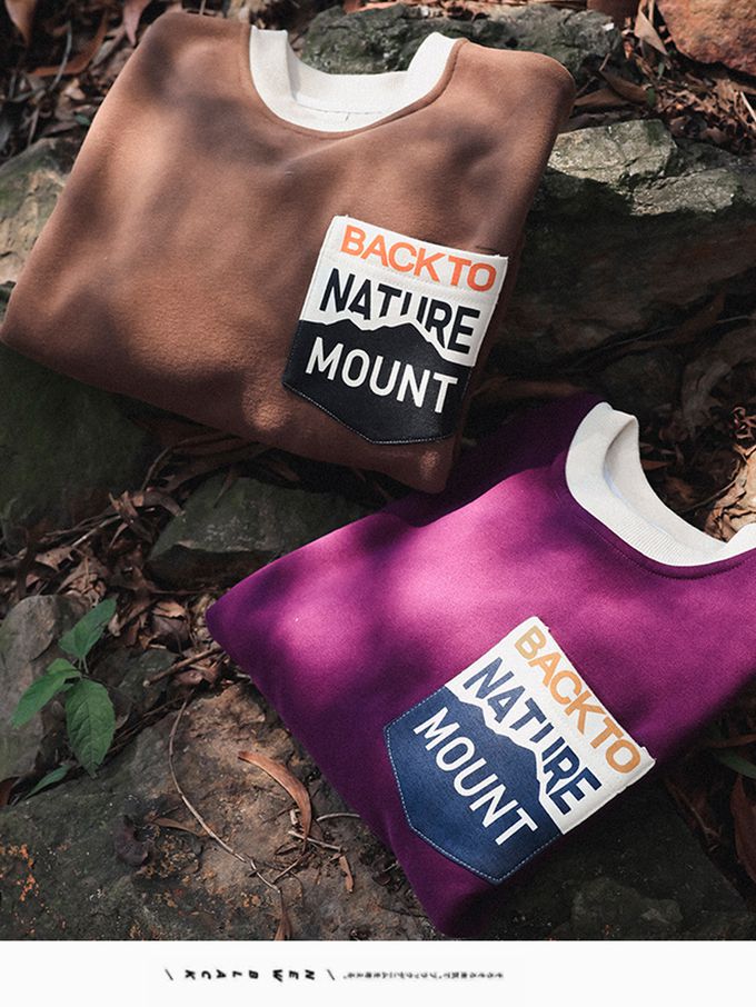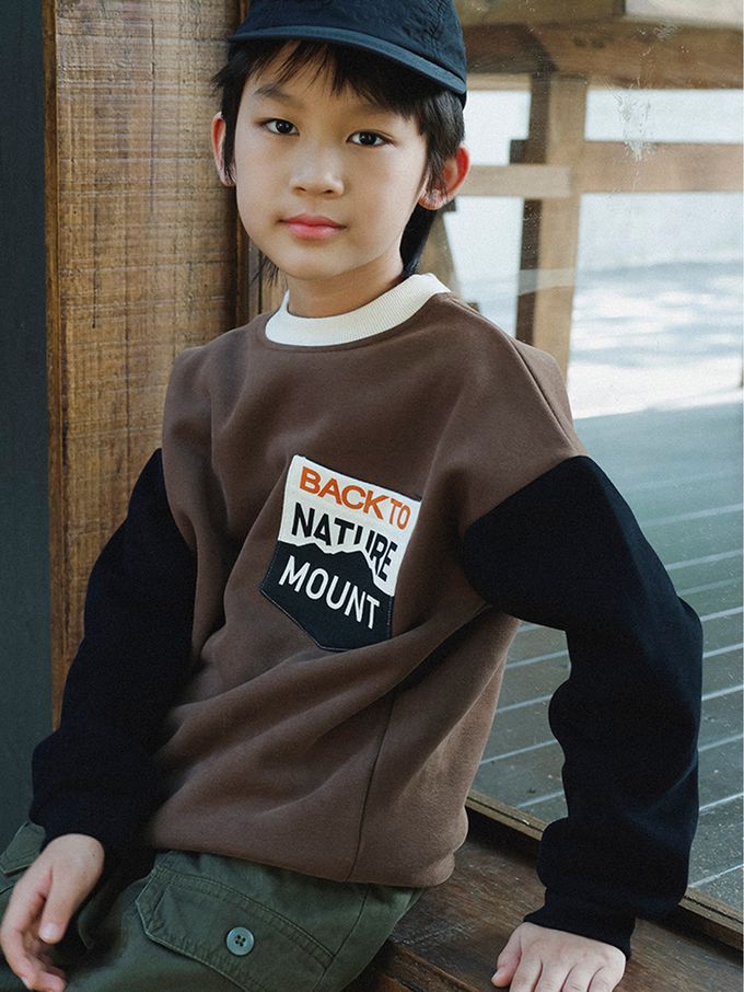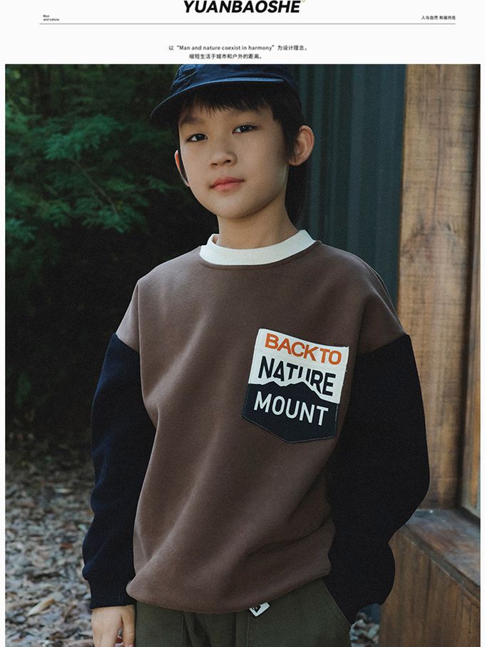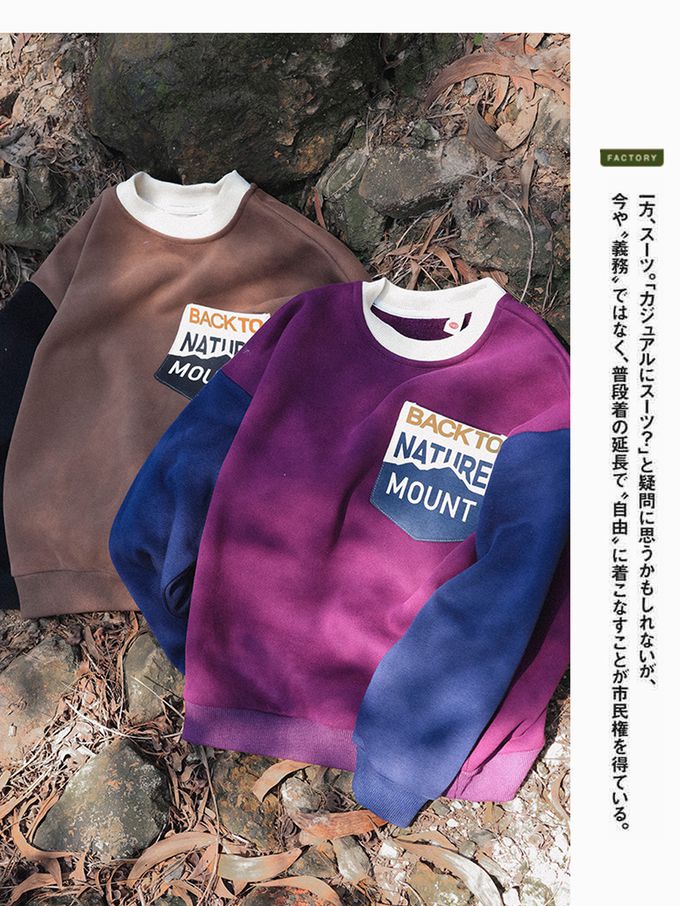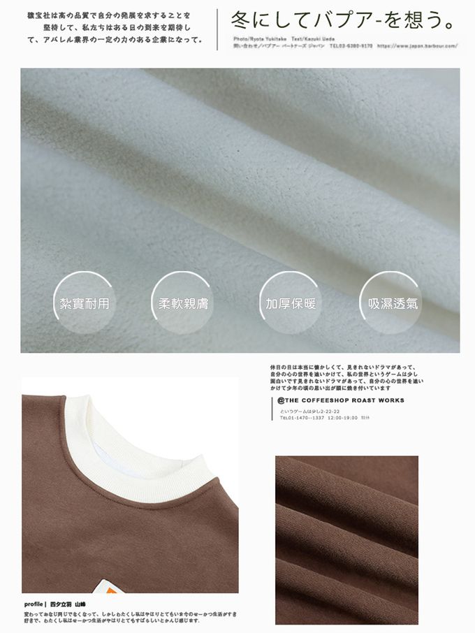 保暖加絨撞色拼接長袖上衣/大學T-咖啡