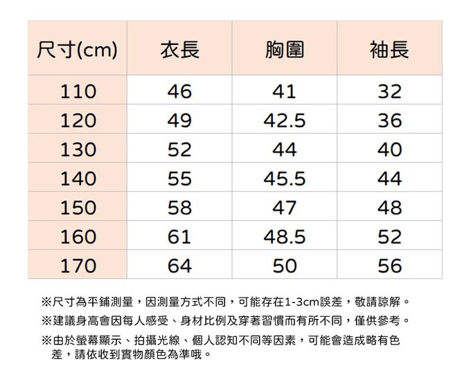 110cm、120cm、130cm、140cm、150cm、160cm、170cm