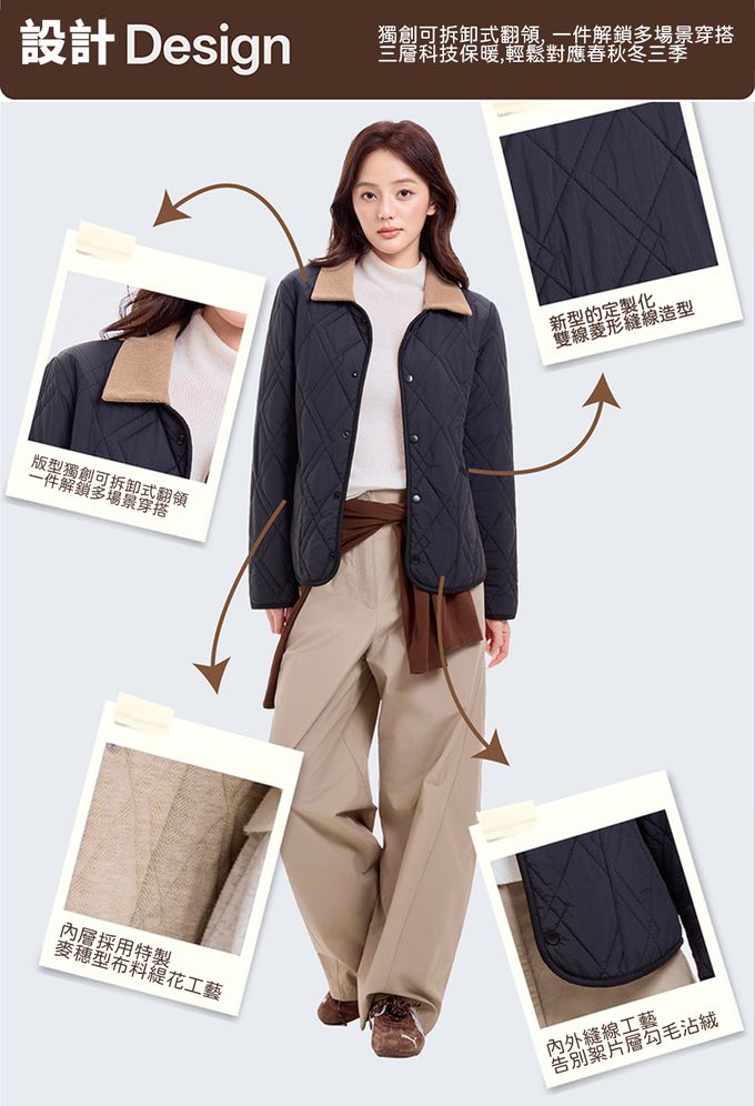 品名:輕暖 2WAY可拆式翻領 羊毛鋪棉絎縫外套