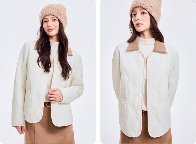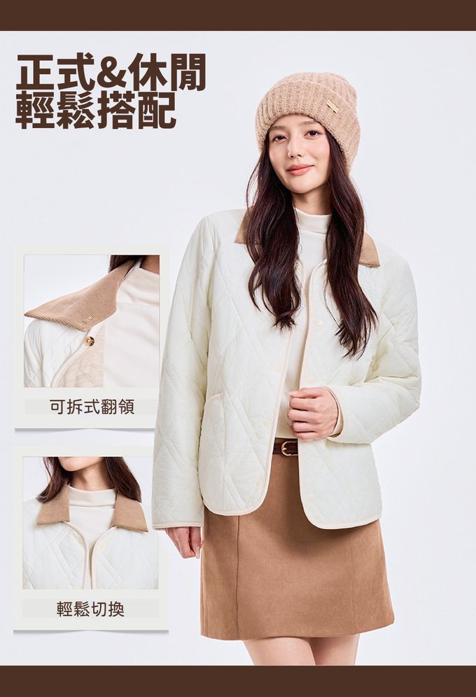輕暖 2WAY可拆式翻領 羊毛鋪棉絎縫外套-女款-米白