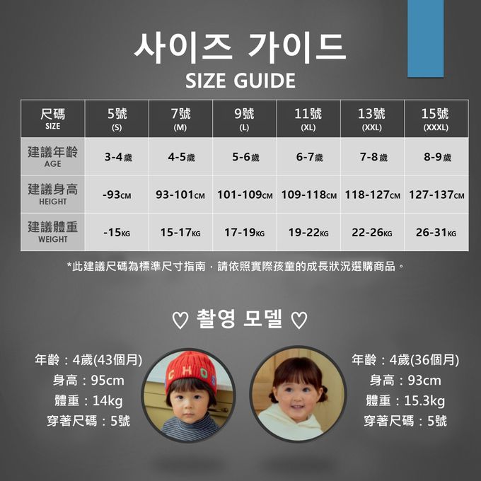 1. 尺寸表單位皆為公分(cm),實際尺寸會因布料彈性、水洗、測量起迄點等因素略有誤差。建議參考孩子平時穿著衣物尺寸進行選購。2. 第一次穿之前,建議單獨手洗。3. 建議以冷水清洗,以免造成移染或掉色。4. 若含牛仔布、有色布料容易互相染色,請分開或單獨洗滌,以免相互移染。請使用中性洗劑。浸泡時間不宜過長。5. 衣物若含圖案、印花等設計均建議手洗;如需機洗,請務必將衣服翻面放入洗衣網、再放洗衣機,以免刮損圖樣。(若有標註不可機洗或乾洗,請勿機洗、乾洗)6. 請勿使用漂白劑、螢光增白劑及衣物柔軟劑,以免破壞布料或導致掉色。7. 洗滌後立刻晾乾,勿使用烘衣機。過分烘乾可能會破壞織物纖維、導致衣物收縮。如有熨燙需求,請低溫熨燙。8. 每件商品於拍攝時均力求忠實呈現,但因每台電腦、手機或平板等設備之螢幕亮度、解析度不同,可能會有些許色差,謝謝媽咪爸比們的體諒。
