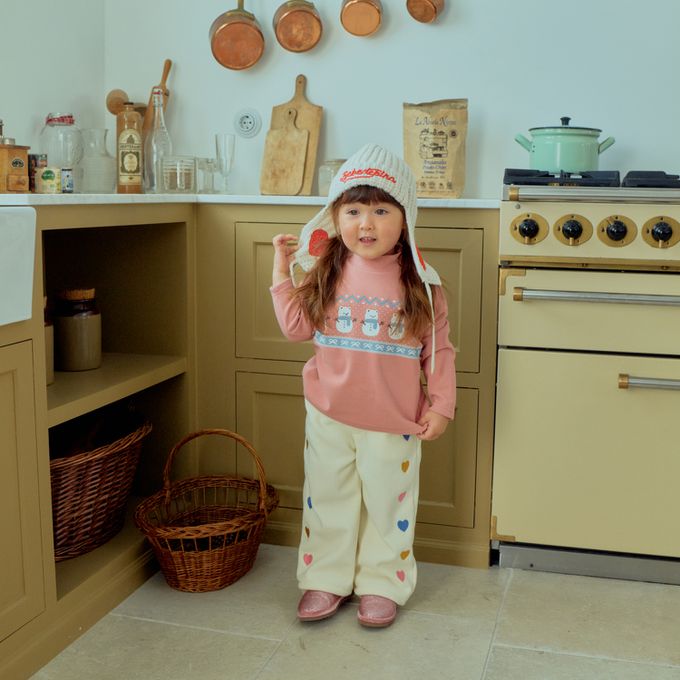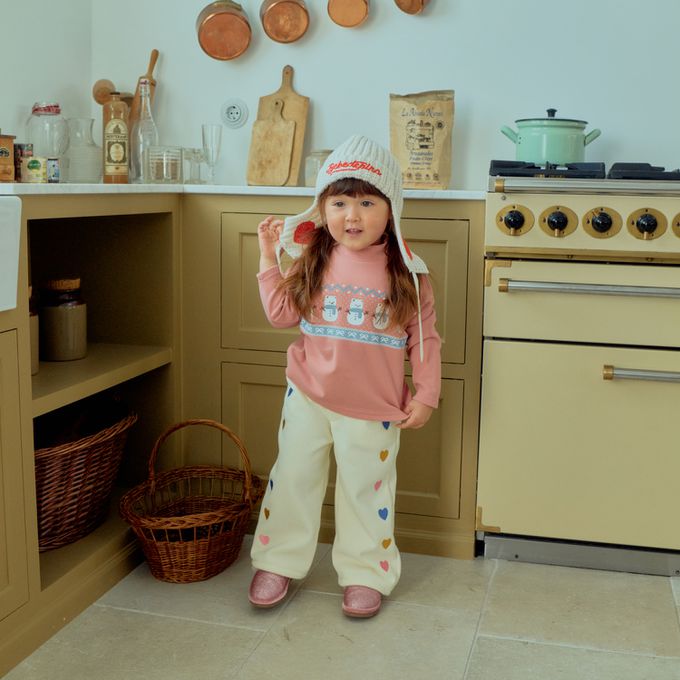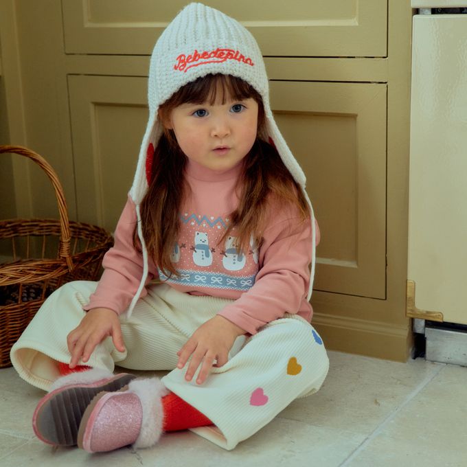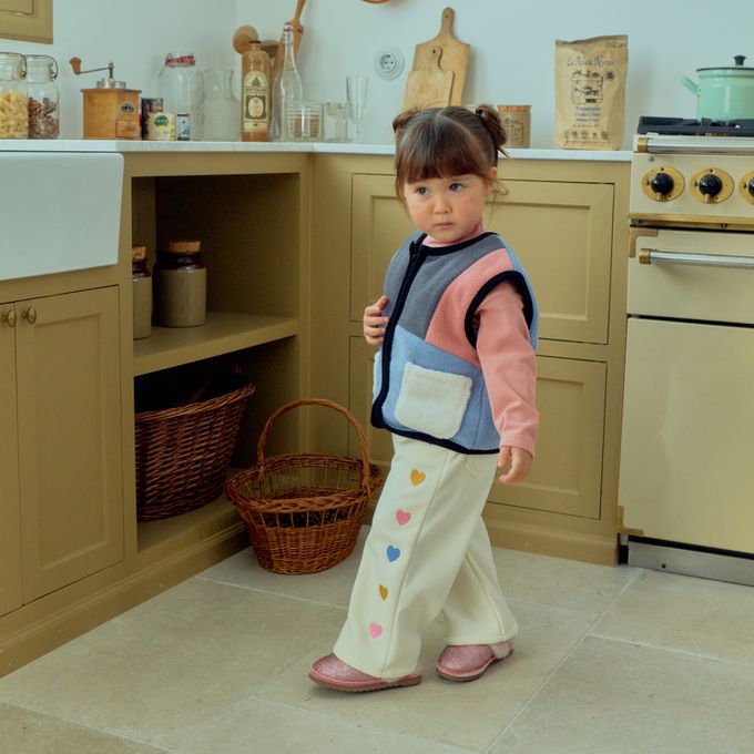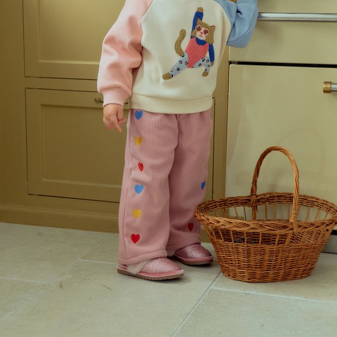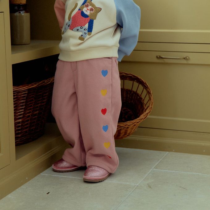 韓國南大門童裝 - First Blue (內磨毛)鬆緊腰彩心點綴燈芯絨長褲-米