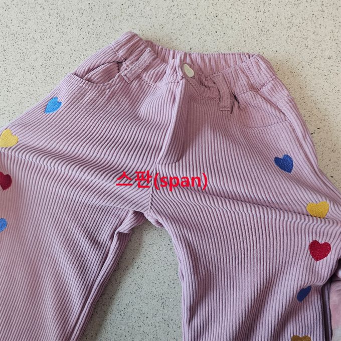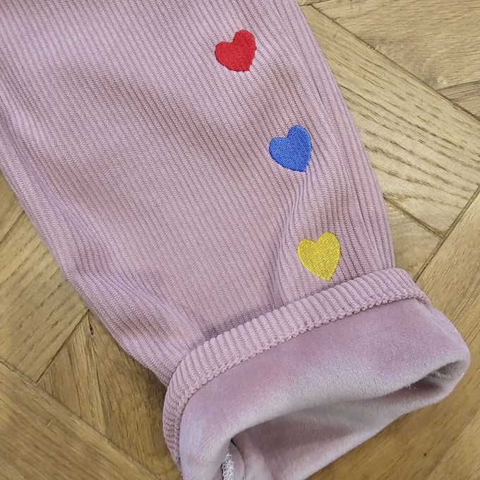 • 品名:First Blue (內磨毛)鬆緊腰彩心點綴燈芯絨長褲