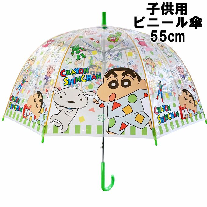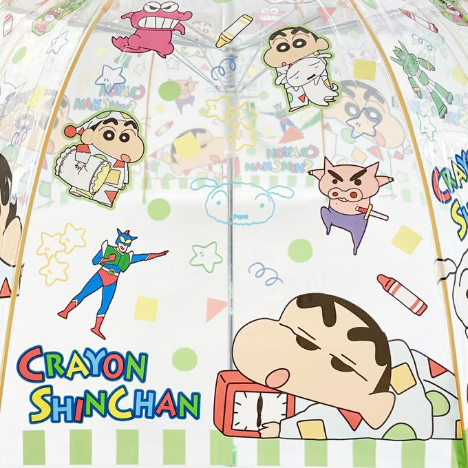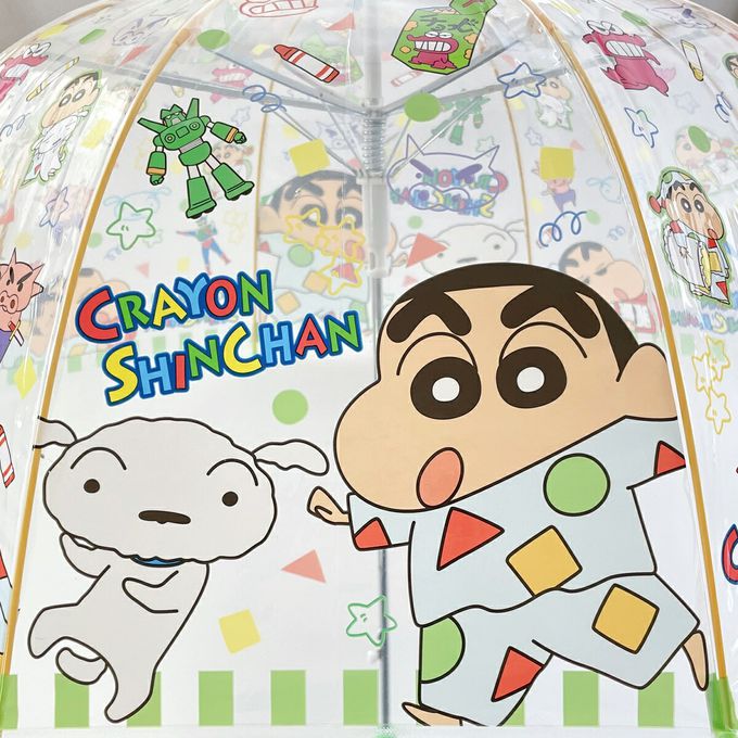 日本 J'S PLANNING - 小孩最愛印花透明直傘-睡衣蠟筆小新-綠 (親骨55cm)