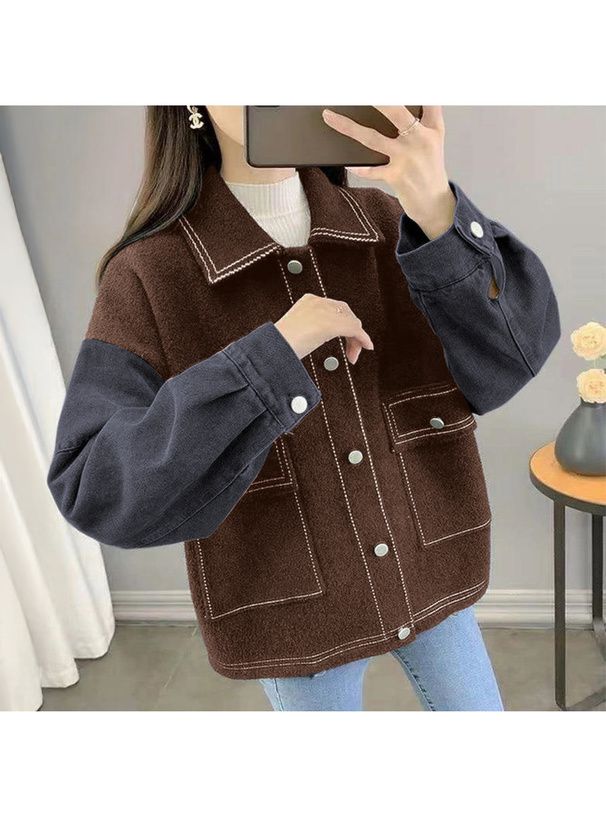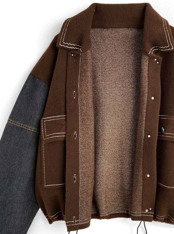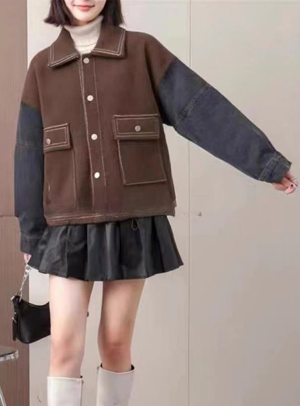日本 GRL - 異素材帥氣縫線牛仔風挺版外套-咖啡 (F)