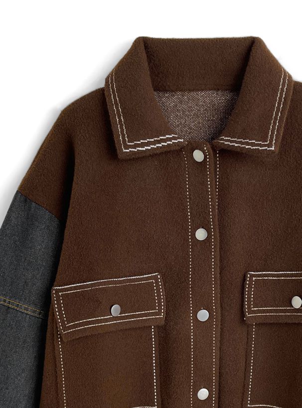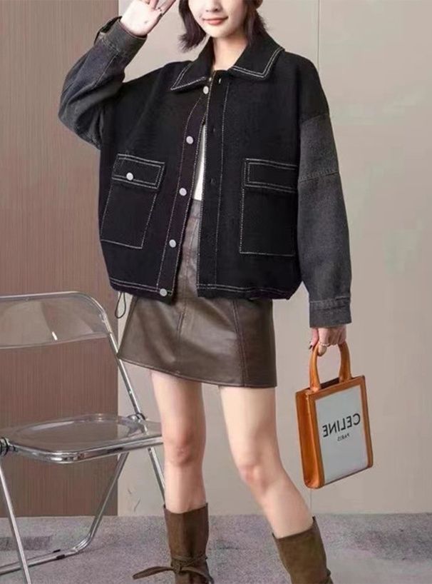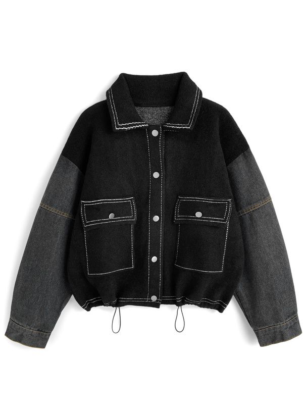 • 品名:異素材帥氣縫線牛仔風挺版外套