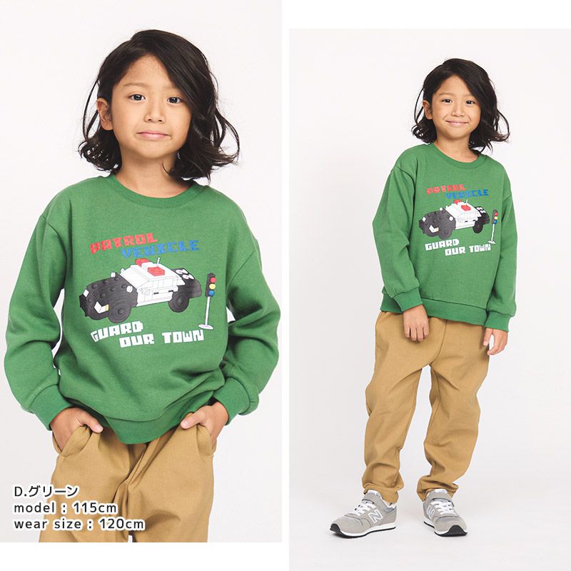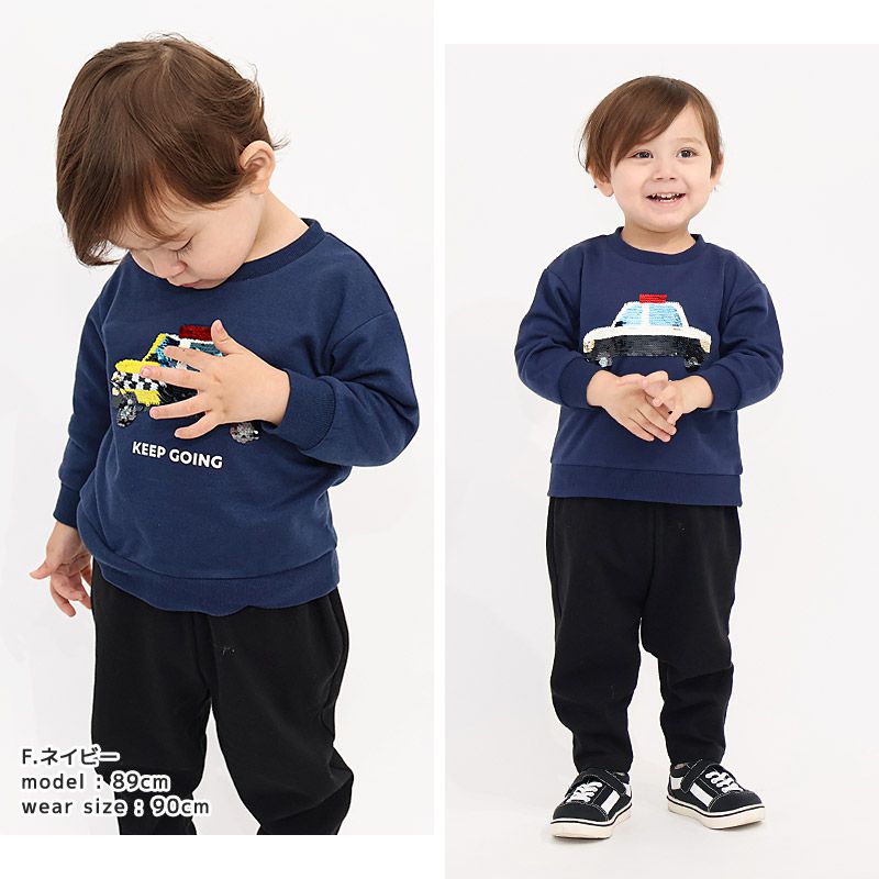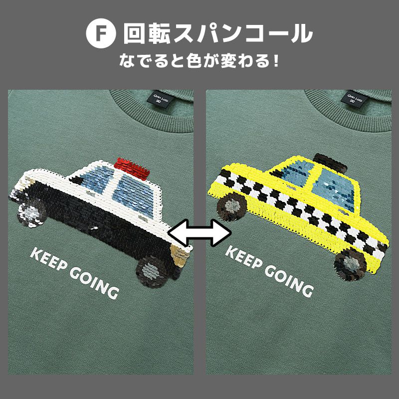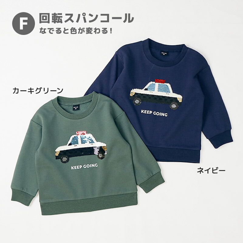 日本 ZOOLAND - 裏起毛 帥氣男孩長袖上衣-亮片警車-海軍藍