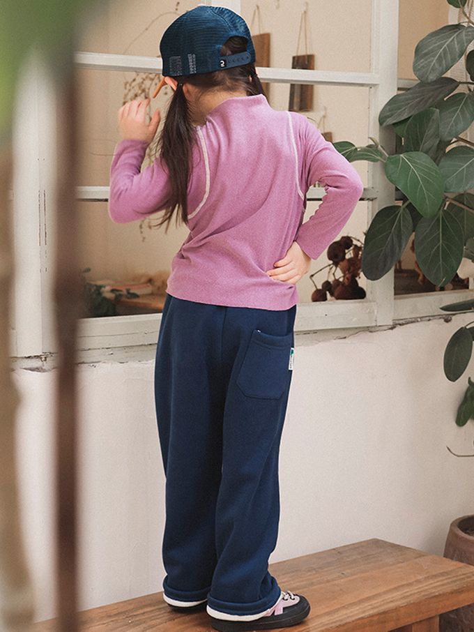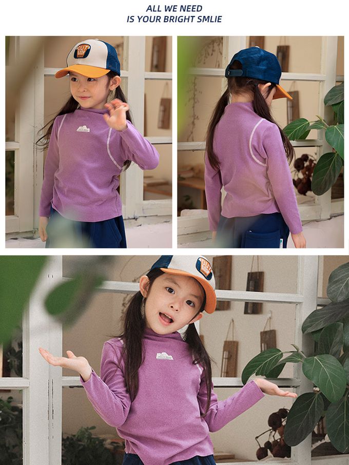 保暖德絨撞色車線半高領長袖上衣-紫色