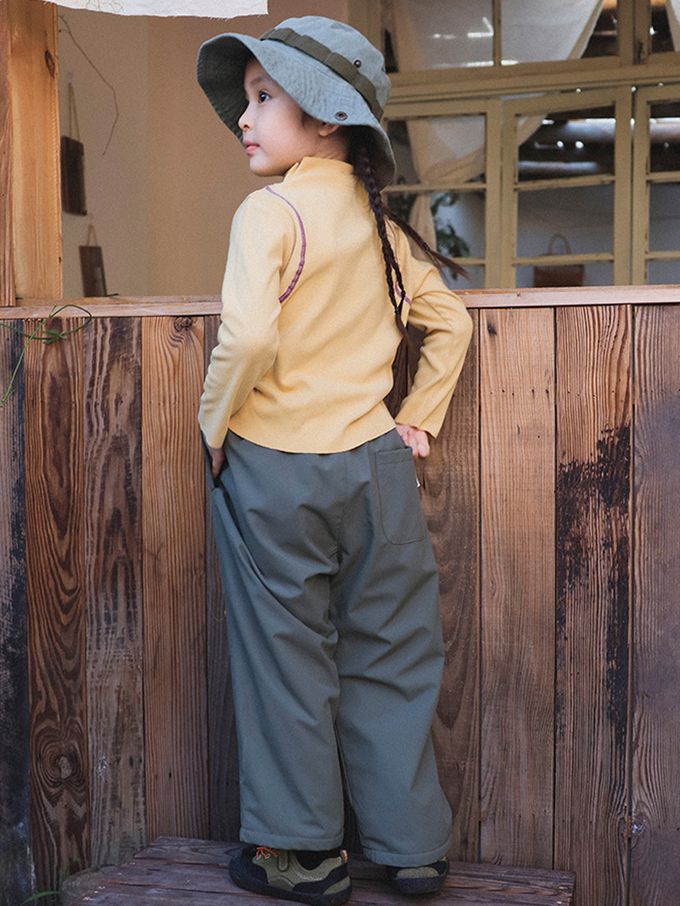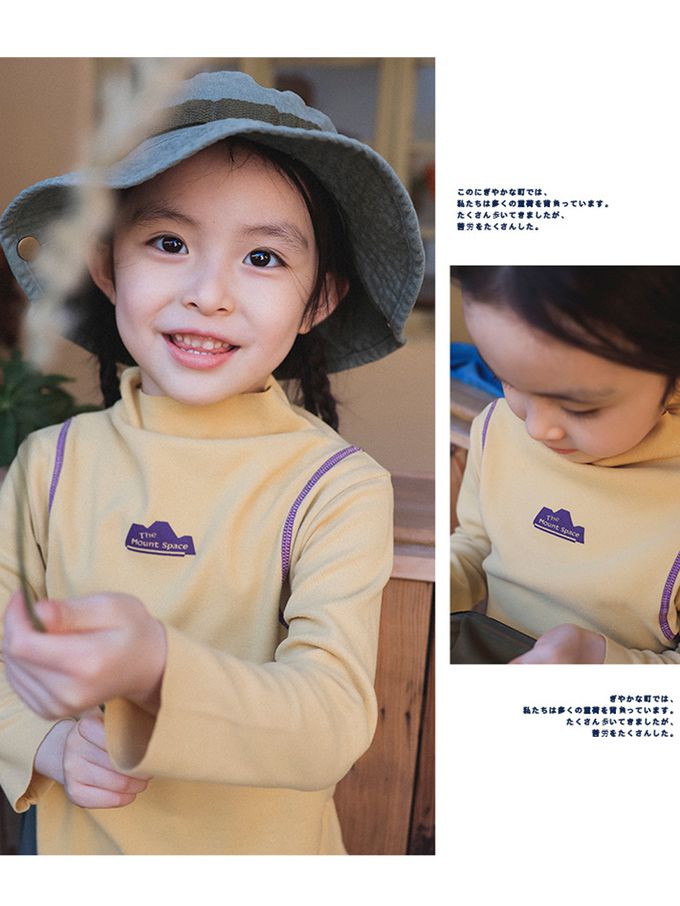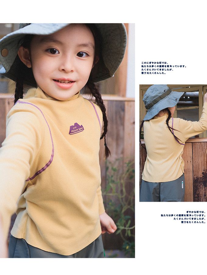 保暖德絨撞色車線半高領長袖上衣-黃色