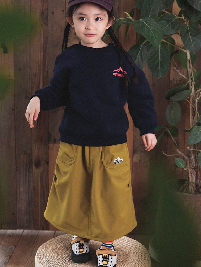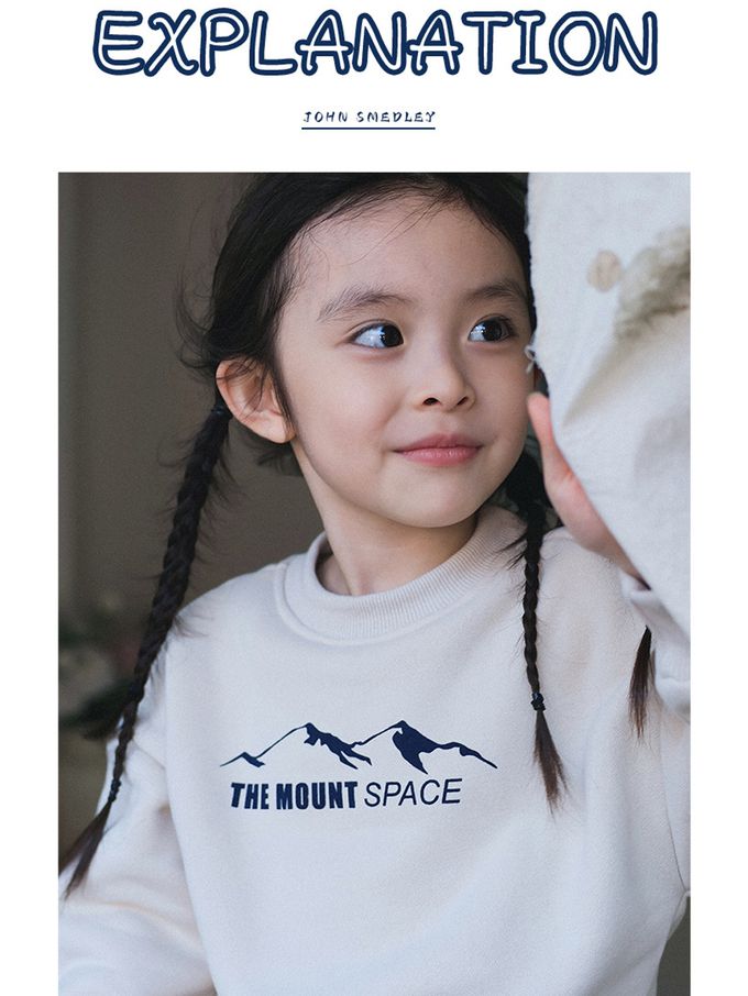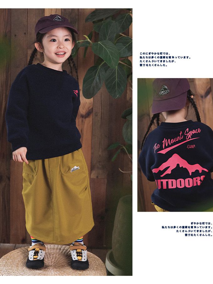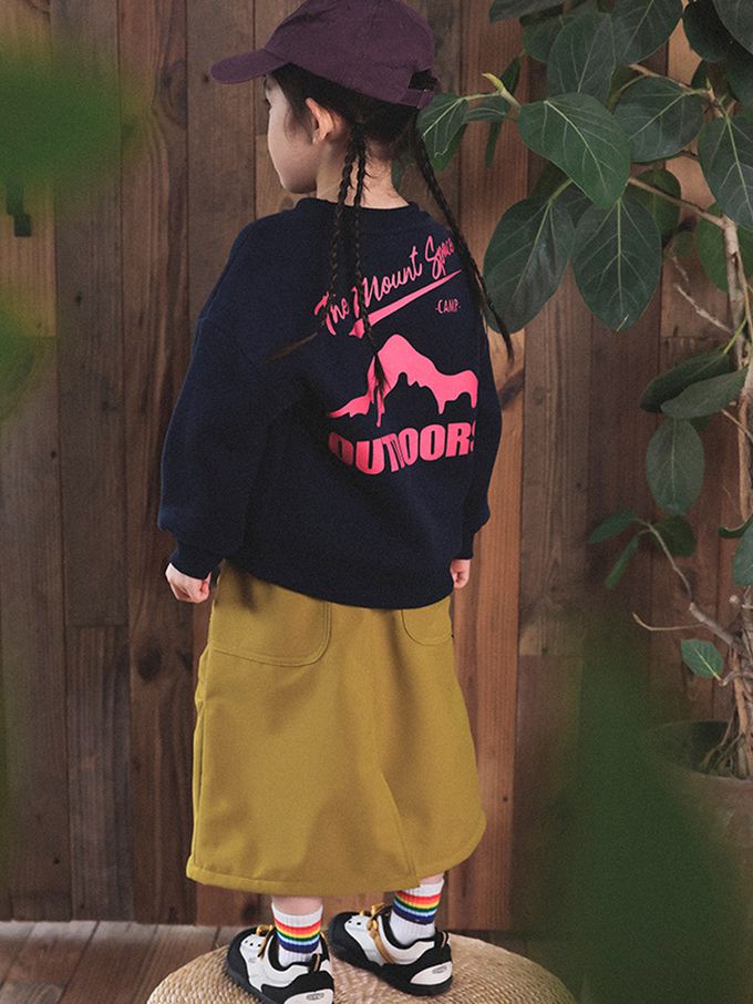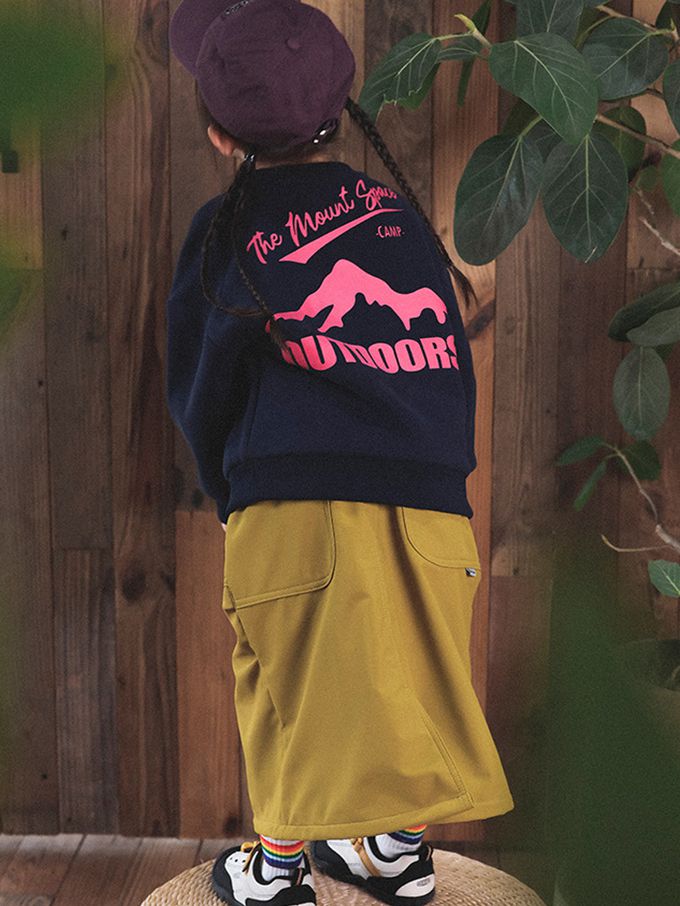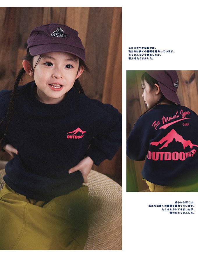 加絨長袖上衣/大學T-前後山系印花-藏青