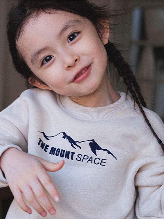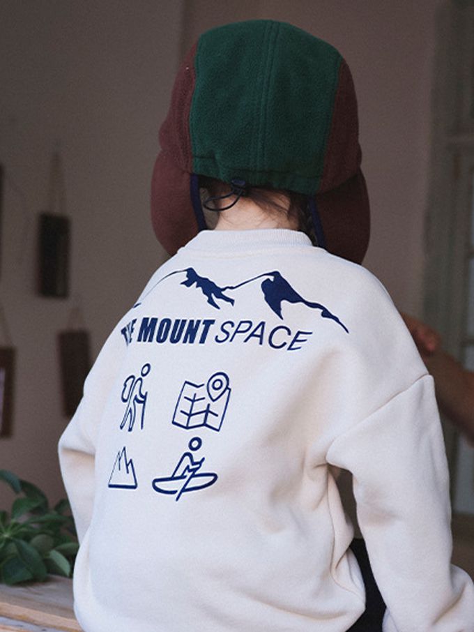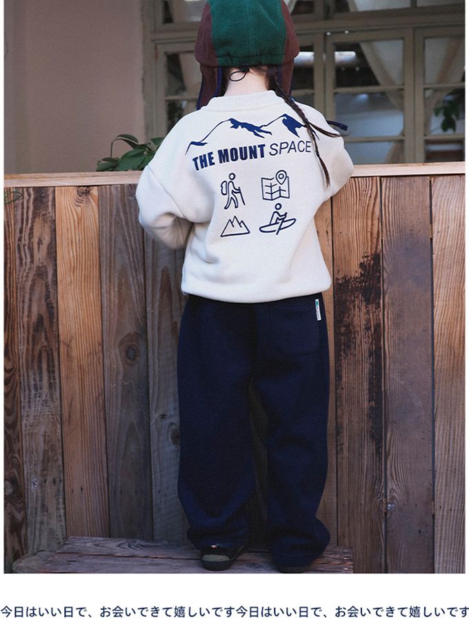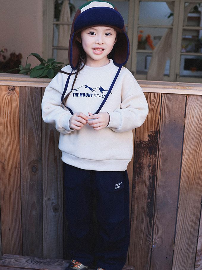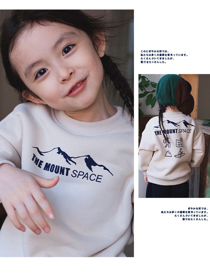 加絨長袖上衣/大學T-前後山系印花-杏色