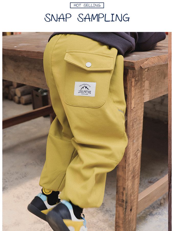 耐磨抗皺休閒束口長褲-反光條-黃綠色