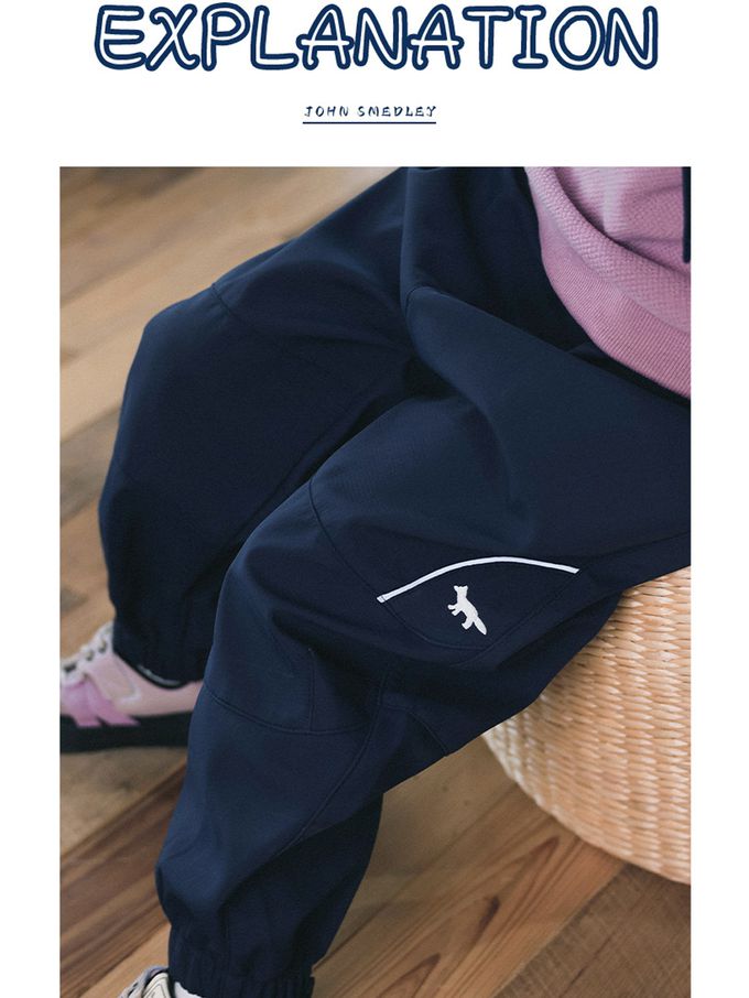 耐磨抗皺休閒束口長褲-反光條-藏青